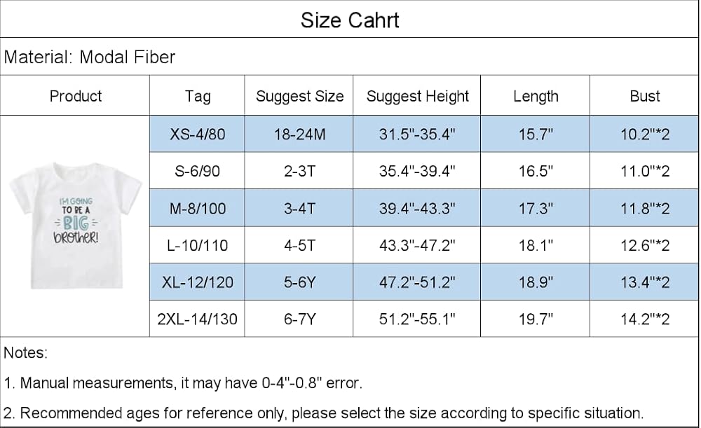 3.Fit and sizing: Size for big brother / Big sister shirt from 18 months - 5 years old. we recommend referring to the size chart in the photo gallery so that you can choose the most suitable size. Choose color and style from the drop-down list.