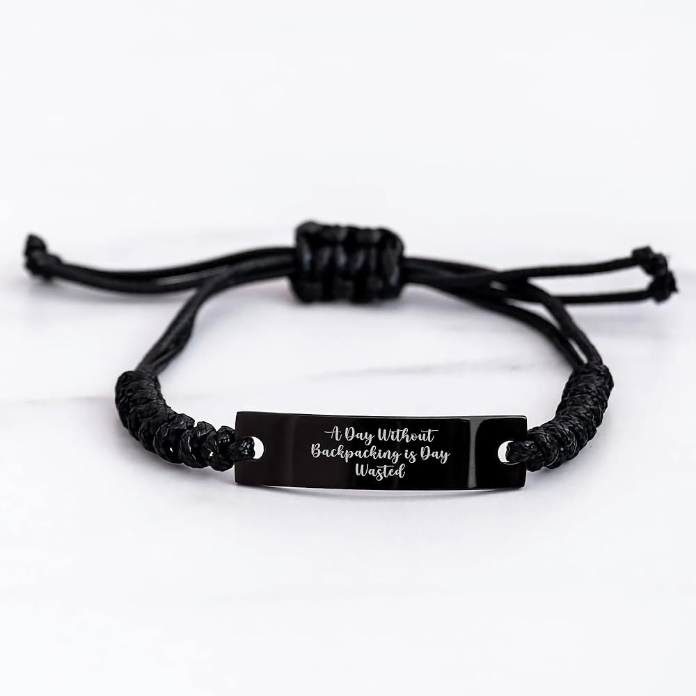 Are you a backpacking enthusiast or searching for a thoughtful gift for the outdoor lover in your life? Look no further! This inspirational rope bracelet features the quote 'A Day Without Backpacking Is Day Wasted' that will surely resonate with any backpacking enthusiast.