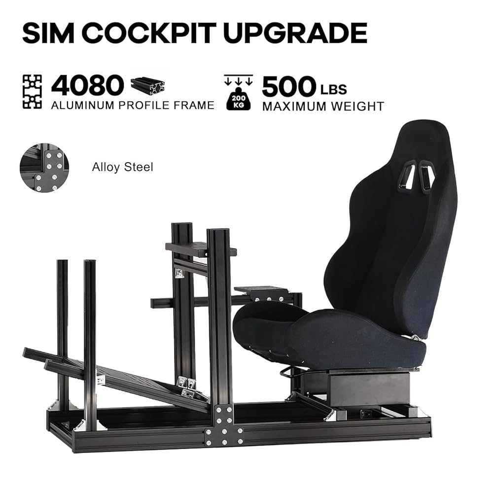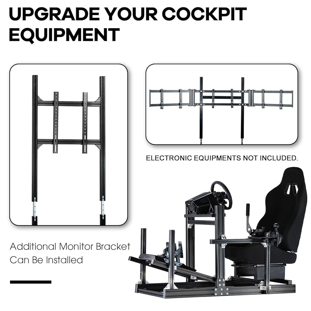 【More Stable & Professional】This racing simulator cockpit is made of 40×80mm solid aluminum profile,the support bar is added to the joystick position to make the whole product more stable.It can support stronger force feedback and bring you a better gaming experience