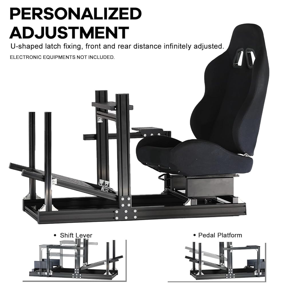 【Infinite Adjustability】 The racing simulator cockpit stand is fully adjustable.Both the stand itself and accessories such as the steering wheel, pedals and seat are adjustable. It fully satisfies the demands of all professional