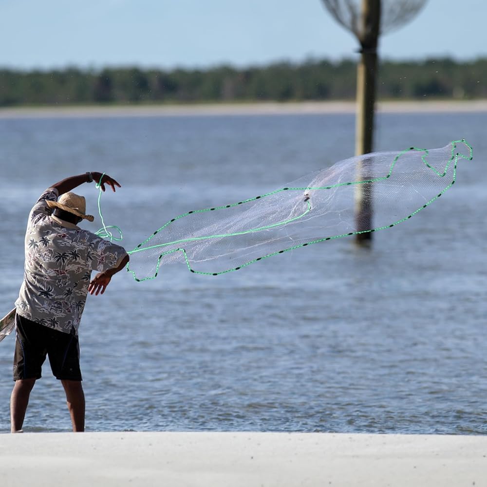 Ideal for Bait Fishing: 3ft/4ft/5ft/6ft/8ft/10ft/12ft radius,7 different sizes available. Usage instructions, a netting needle, and a utility box are included for all your needs. It is easy to operate whether it is a pond, a river, a shallow sea, etc.. High-quality craftsmanship makes this bait cast net a must-have for any fisherman.