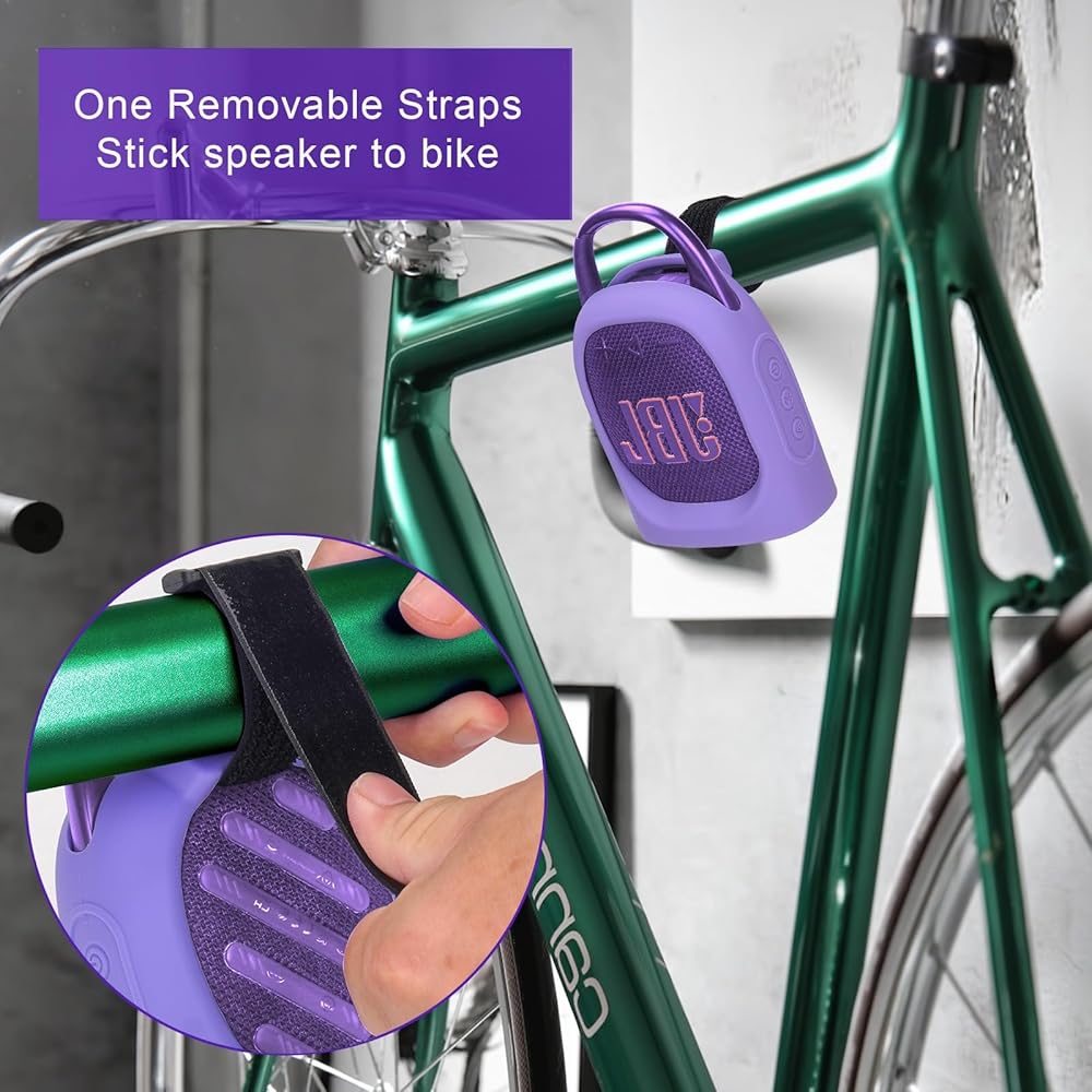Unlike traditional silicone cases, this case has a detachable Velcro strap on the back, which allows you to fix the speaker on a golf cart, boat, bicycle, etc., making it very convenient to use in outdoor activities.