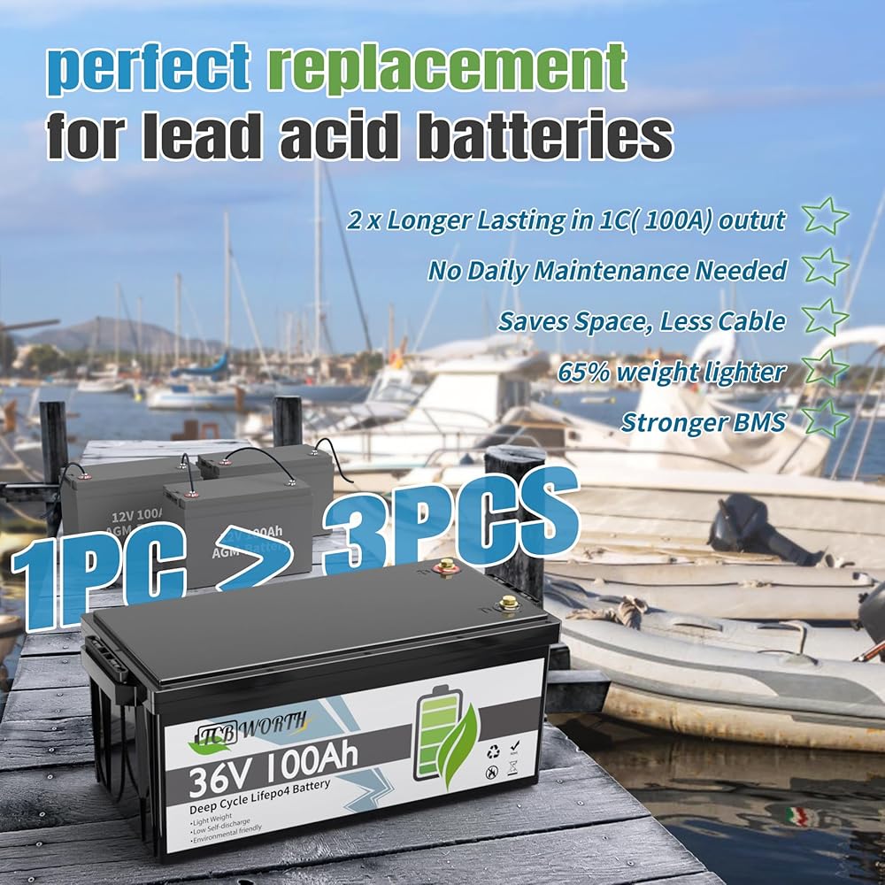 【Perfect Replacement for Lead-acid Batteries】 TCBWORTH 12V 100Ah Lithium LiFePO4 Battery is the perfect choice for lead-acid battery conversion and upgrading, the weight of 100ah lifepo4 battery is only 20.7lbs, they are 35% smaller and 63% lighter than ordinary lead-acid batteries, and the energy density has been increased by 3-5 times, the deep cycle has 10 times longer, the lifespan is 3 times longer.