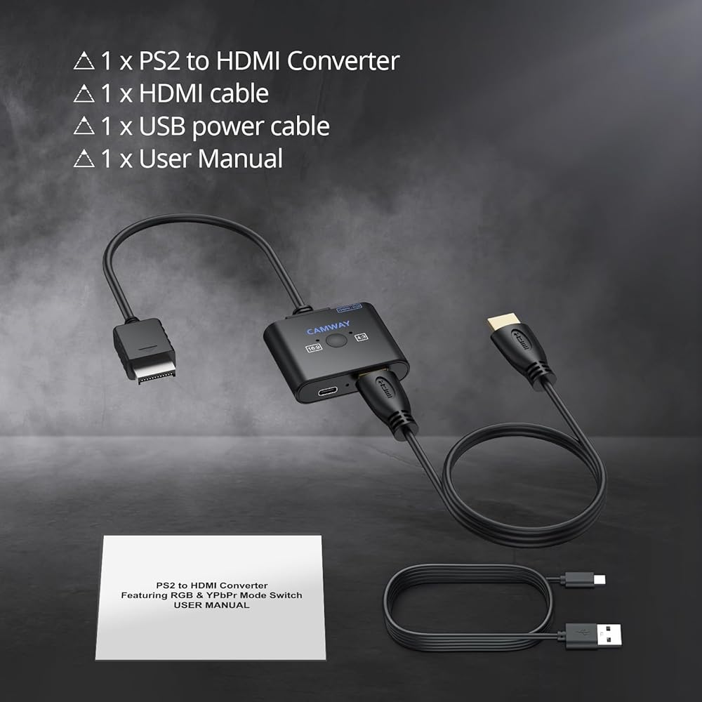CAMWAY PS2 HDMI Upscaler Adapter - 1080P PS2 to HDMI Converter, RGB/YPbPr Switch,4:3/16:9 Aspect Ratio,Plug and Play with HDMI Cable for All PS2 Consoles,No Lag, Professional Chip