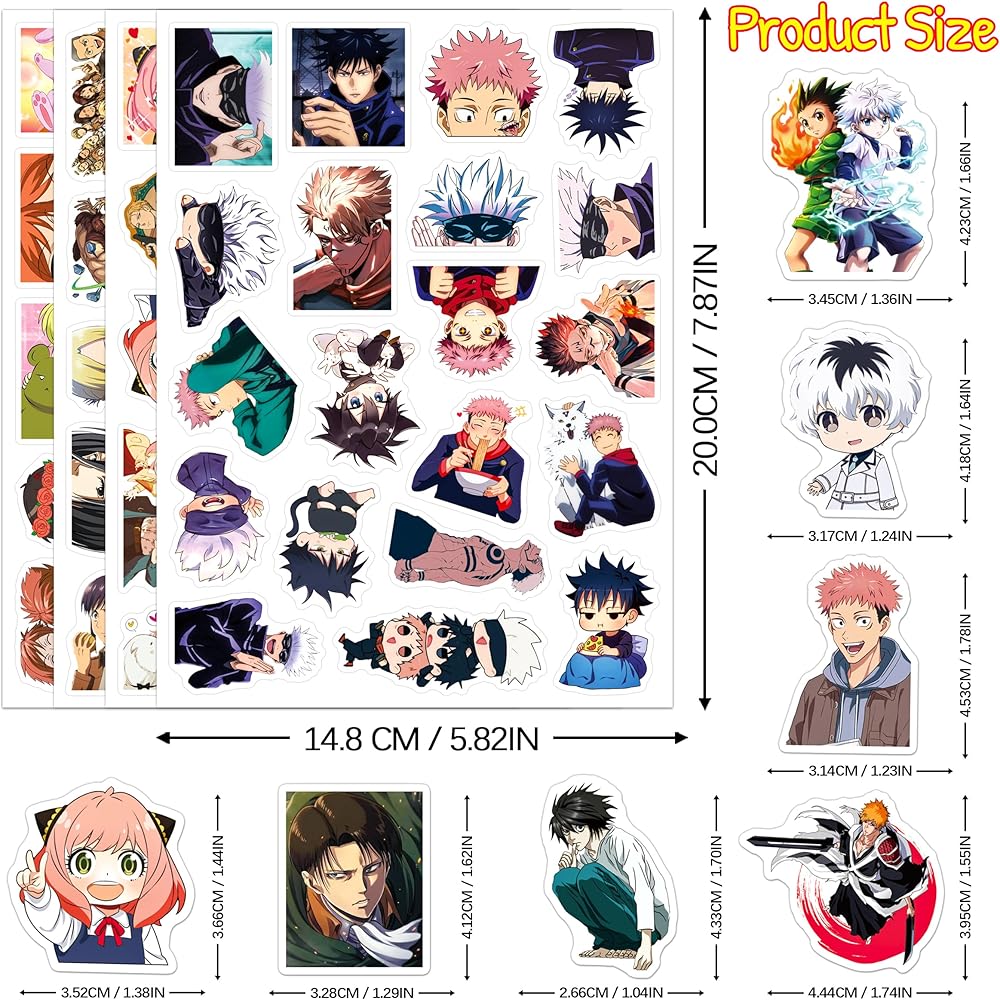 [Meticulously design] Our anime stickers are carefully designed and well made.The pattern is clear and the color is bright.The stickers are not easy to faded.All the characters from the anime stickers are friendly to kids.Please feel free to contact us if you have any questions!
