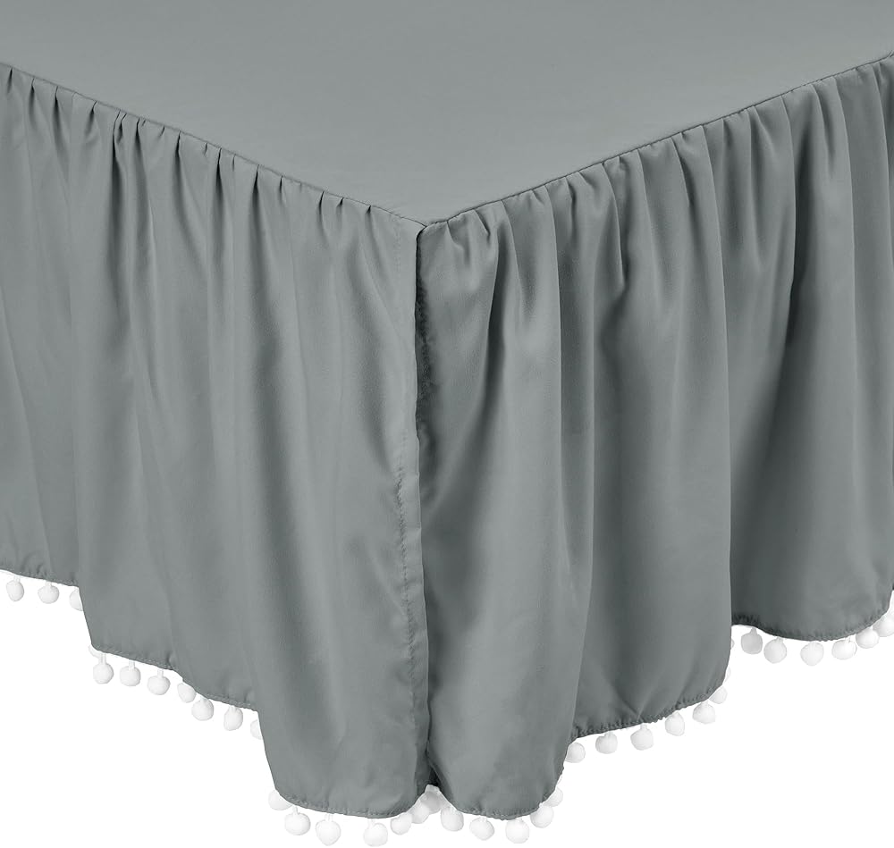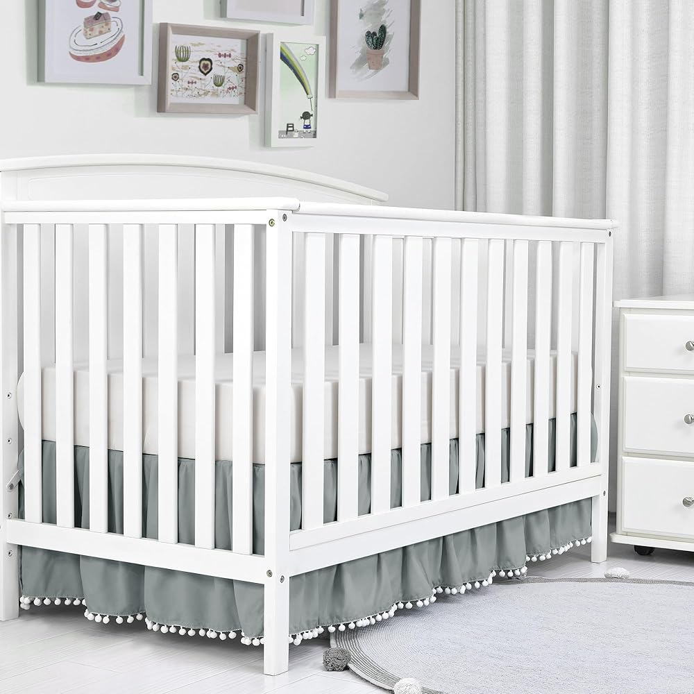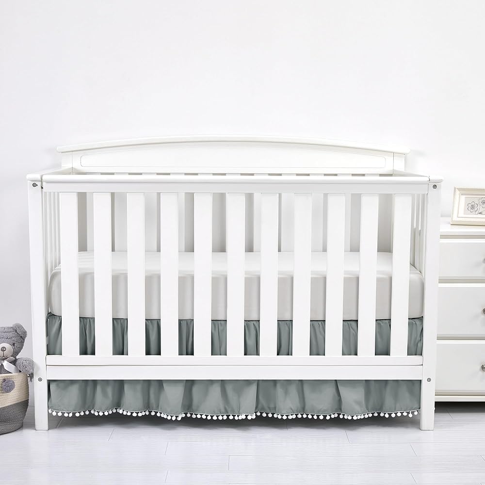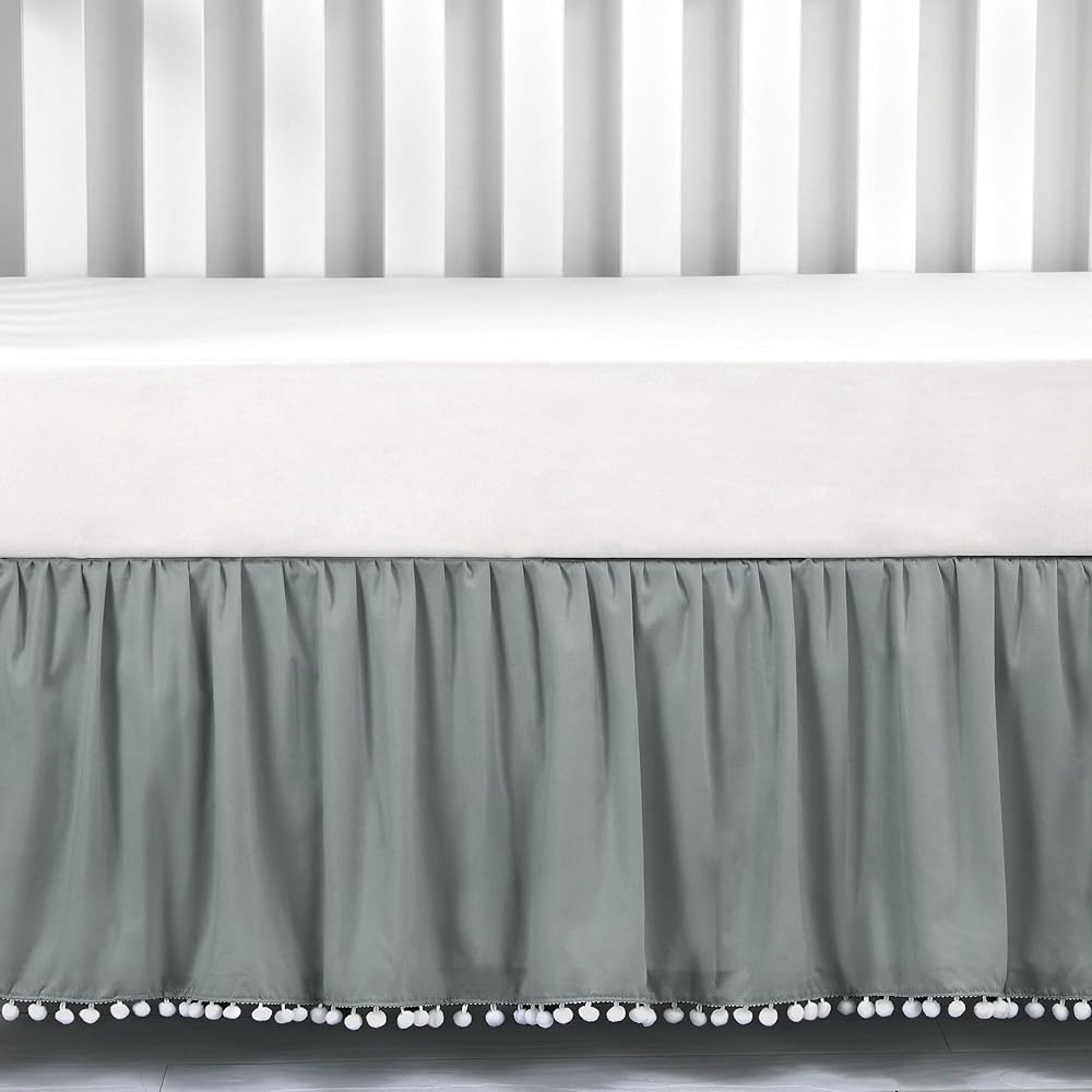 UPGRADED DESIGN: TILLYOU crib skirt is styled with grace ruffles and pompoms for a soft tailored finished look. The pompoms makes your crib or toddler bed look more cute and attractive
