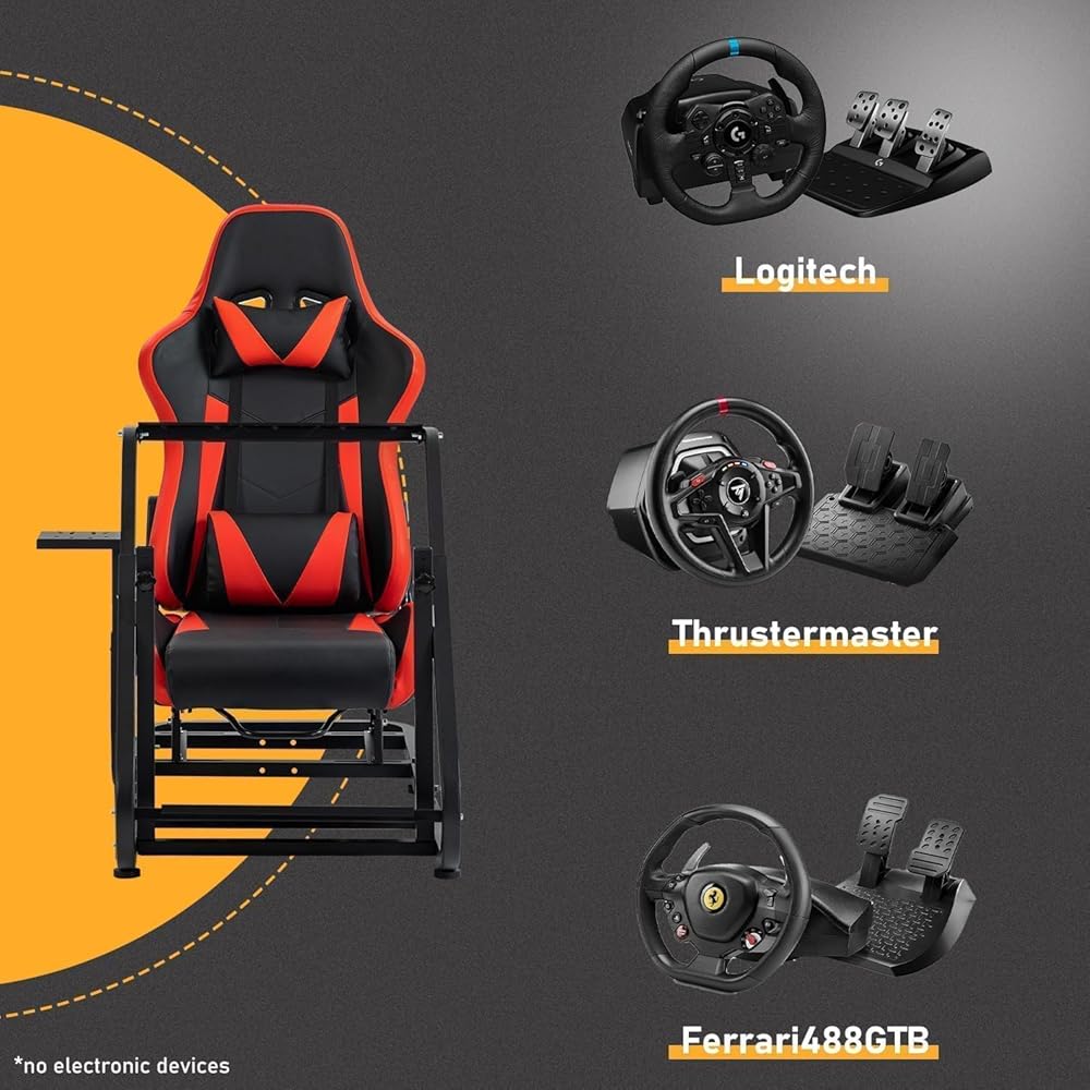 【Wide Compatibility】This driving simulator cockpit fits for Logitech, Fanatec, and Thrustmaster most steering wheels, pedals, and shift levers