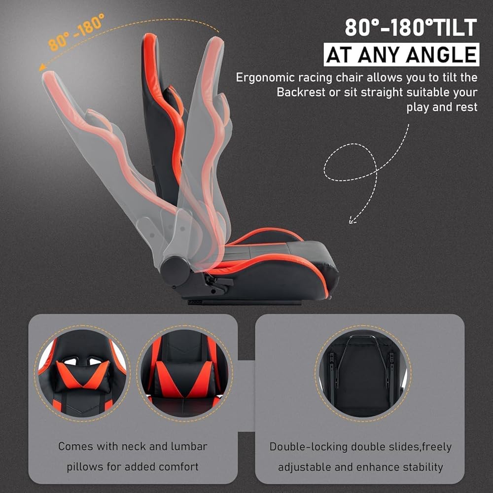 【Professional Gaming Chair】Dual rails and dual slides of the racing simulator cockpit are easy to adjust and stable. Ergonomic gaming chair with lumbar and neck pillows
