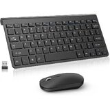 Compact Wireless Keyboard Mouse Combo, Mini Portable Travel Keyboard and Silent Mouse Set with USB Receiver, Quiet Click, Small Size, Adjustable 2400 DPI for Computer, Laptop, PC, Windows, Mac