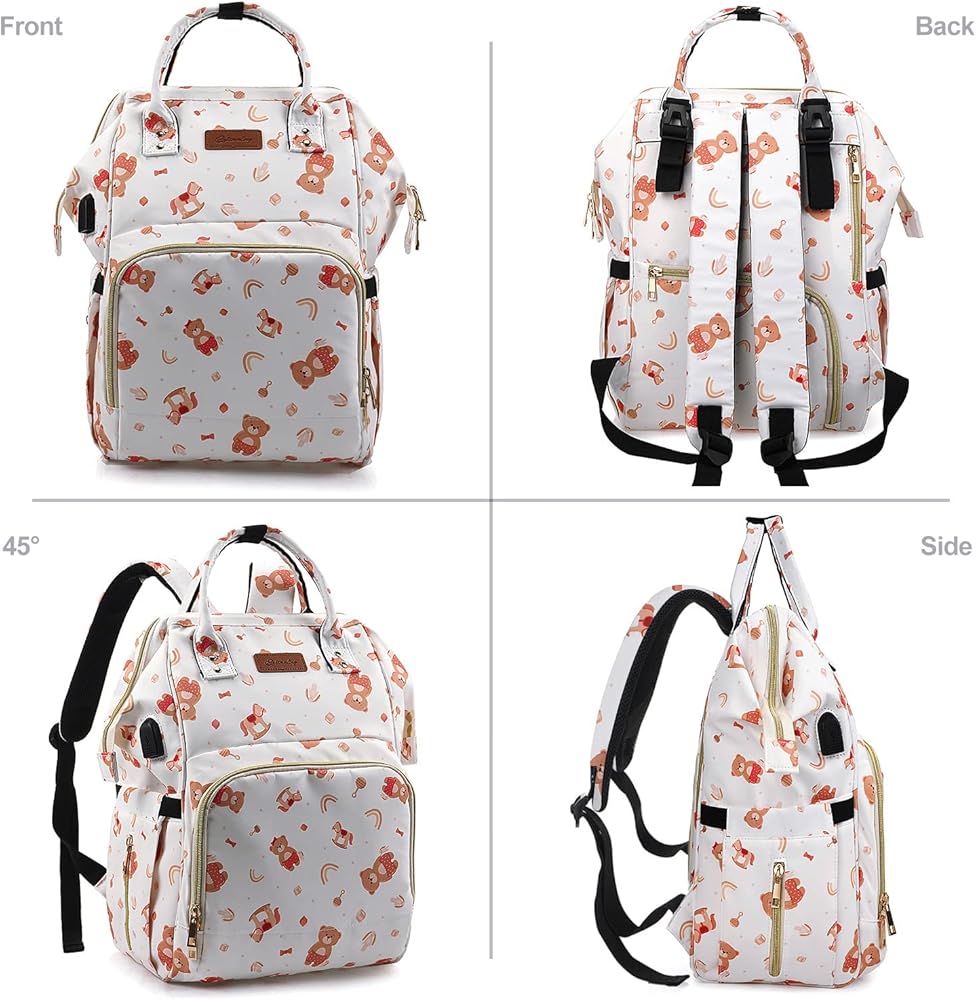 Convertible and so Versatile: This diaper bag can use as backpack, handbag, also can hang on the stroller. Elegant and suitable for many occasion like shopping, traveling etc. Moreover, Practical design make this diaper bag backpack perfect for travel with your boys & girls, an ideal baby shower gift!
