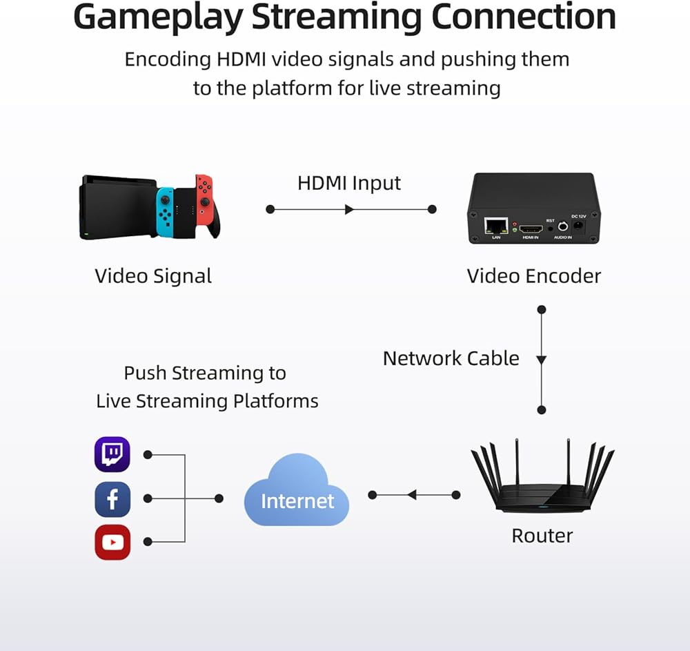 1080P60 hdmi Encoder-Support SRT,RTMP,RTSP,RTMPS,UDP,HTTP,HLS,Live Stream Broadcast for YouTube, Facebook, Twitch, etc. Video Encoder for Live Streaming