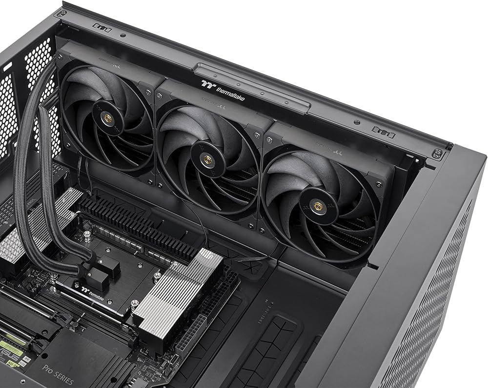 【TOUGHFAN Pro Perfect】Removing heat from the 420mm radiator are three 140mm TOUGHFAN PROs capable of 3.57mm-H2O static pressure, 119.6 CFM of airflow, and RPMs from 500~2000. Achieved by advance LCP blades that have been tuned for both airflow and static pressure.
