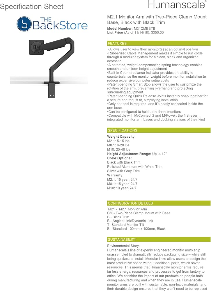 M2.1 meets a variety of configuration needs for lighter monitors up to 15 lbs.