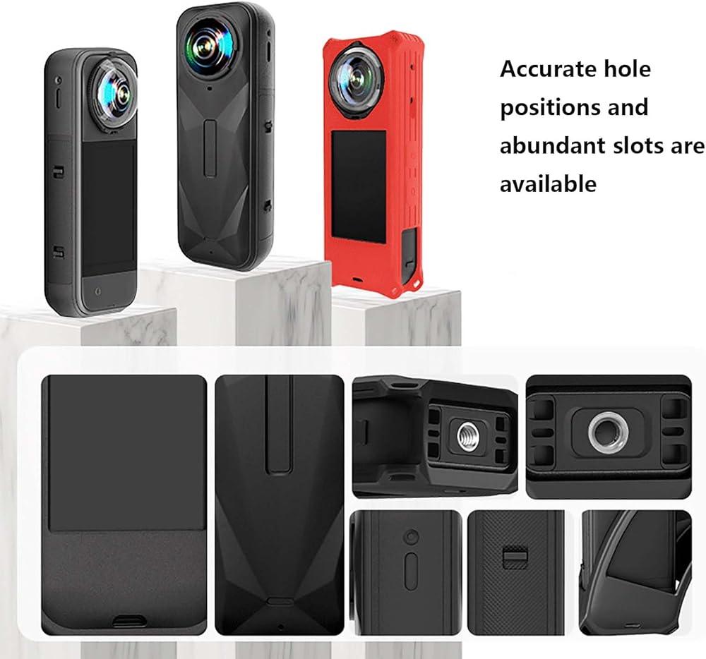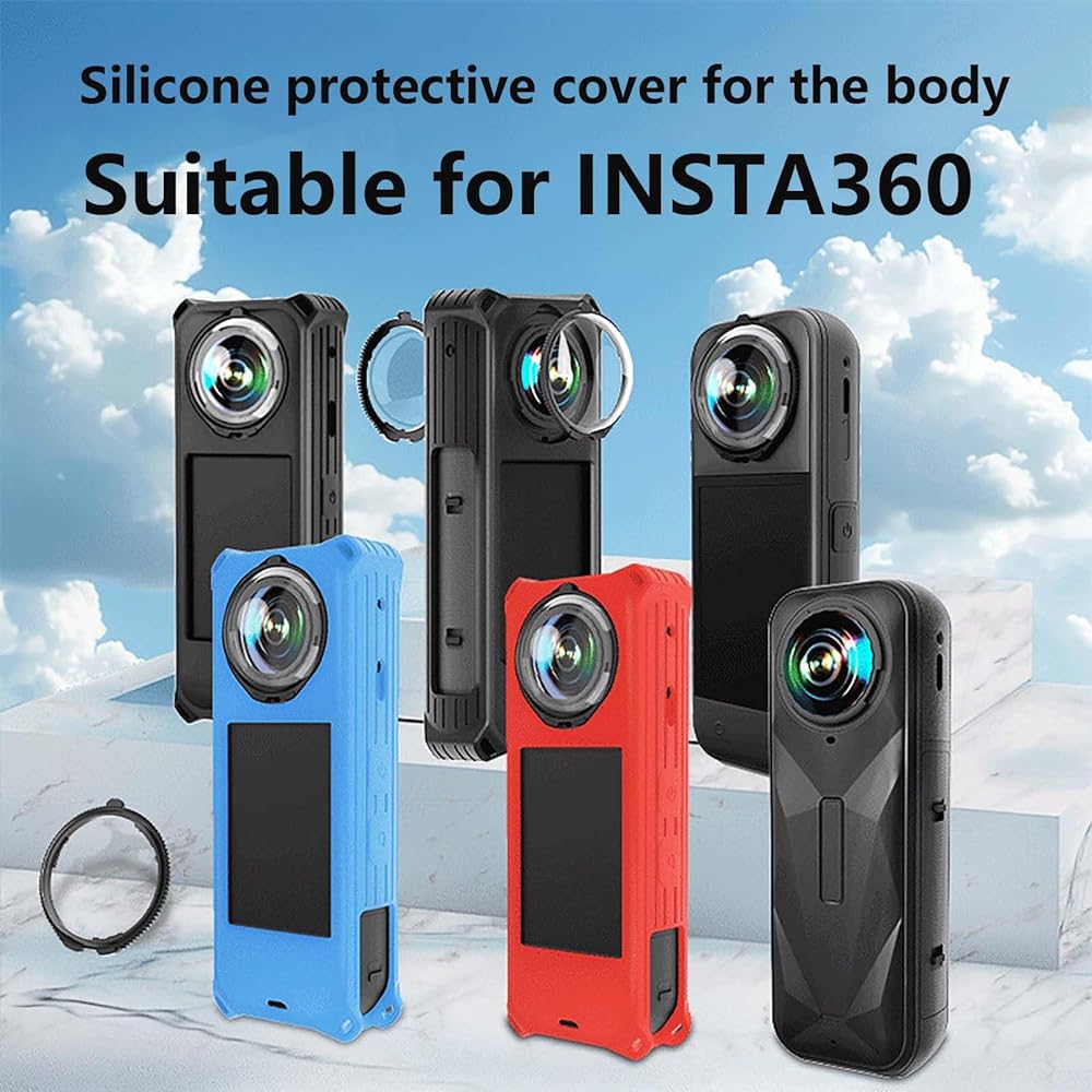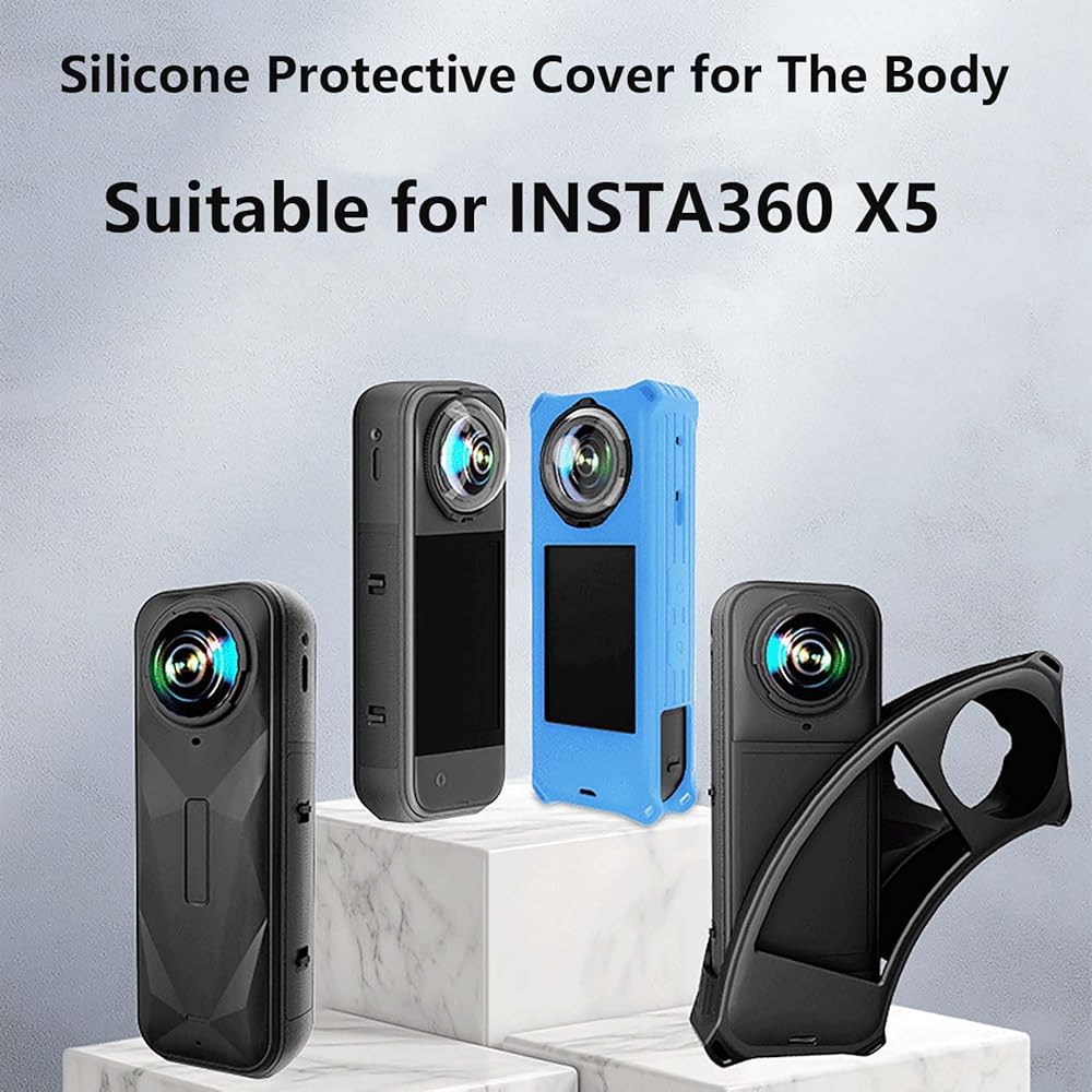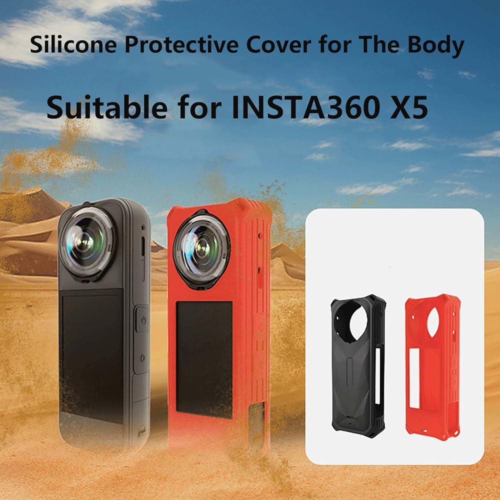 Specially designed for Insta360 X5, this silicone case provides 360° shockproof & anti-scratch protection, keeping your camera safe from drops, bumps, and daily wear. Comes with a built-in for Insta360 X5 lens cap to protect the delicate lenses from dust, fingerprints, and scratches, ensuring crystal-clear footage every time. Made of premium silicone material, the case offers a comfortable, anti-slip grip for secure handling, reducing the risk of accidental drops. Precisely designed openings allow full access to all buttons, ports, and the touchscreen without removing the case, ensuring hassle-free operation. Ultra-thin yet durable silicone construction adds minimal bulk while maintaining the camera's sleek design—perfect for travel, outdoor adventures, and daily use.