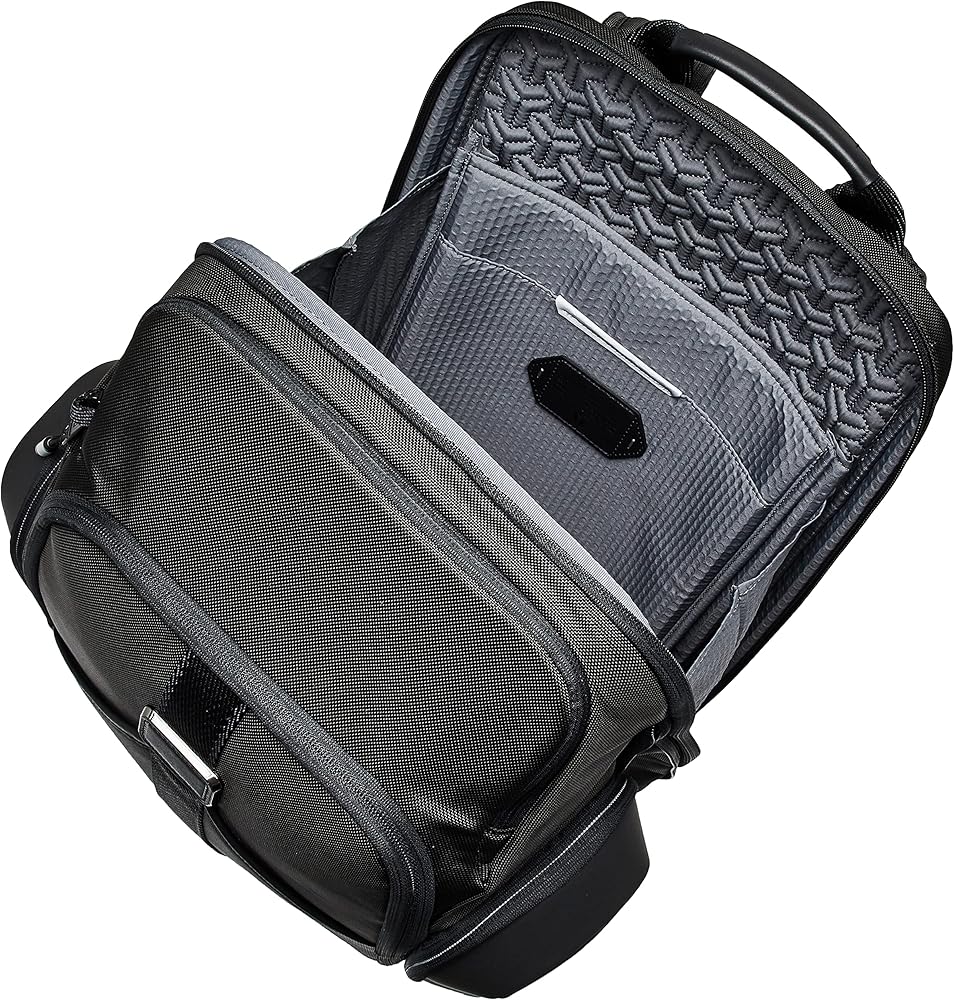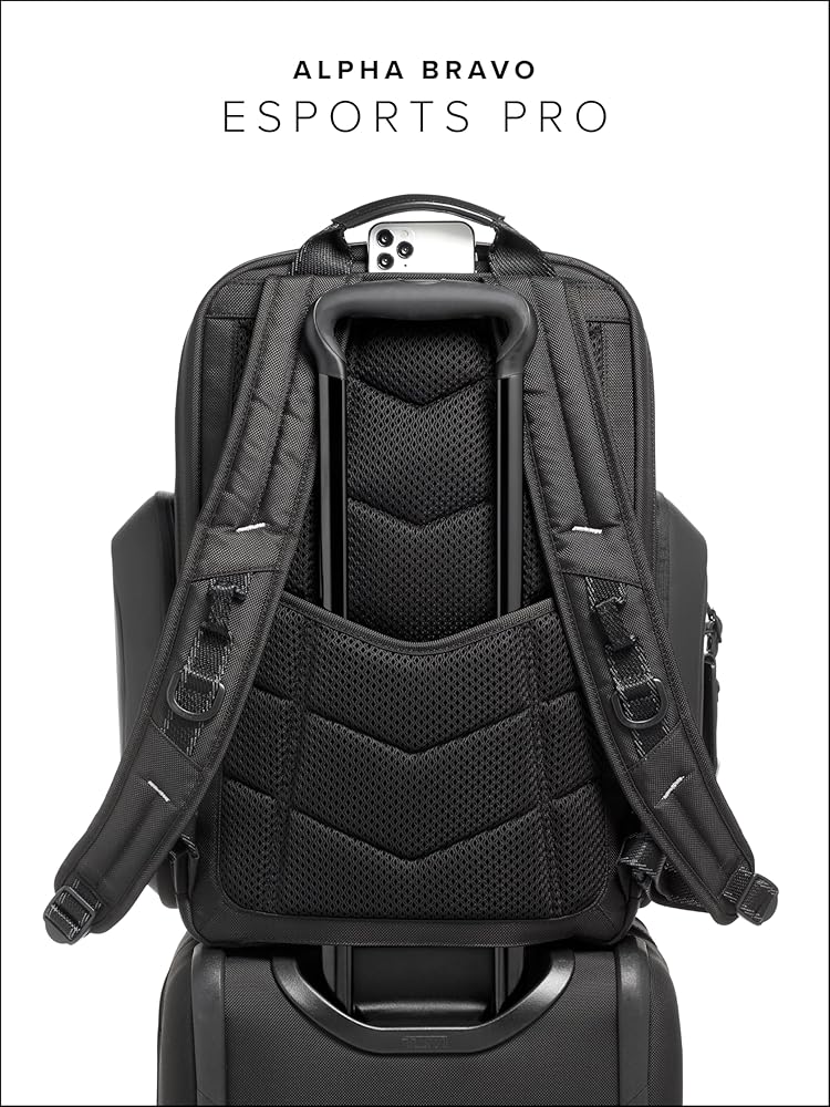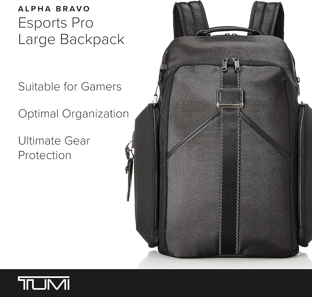 Travel comfortably and in style with the TUMI Alpha Bravo Esports Pro Large Backpack, the quintessential large backpack designed for gamers on the move. This high-capacity travel laptop backpack effortlessly holds all your gaming essentials, from keyboards and headphones to your treasured gaming laptop. The expandable design allows for extra space when you need it - perfect for those extended tours or intense tournament days. With its rugged yet sophisticated exterior, it transitions smoothly from your tournaments to your home battlestation.