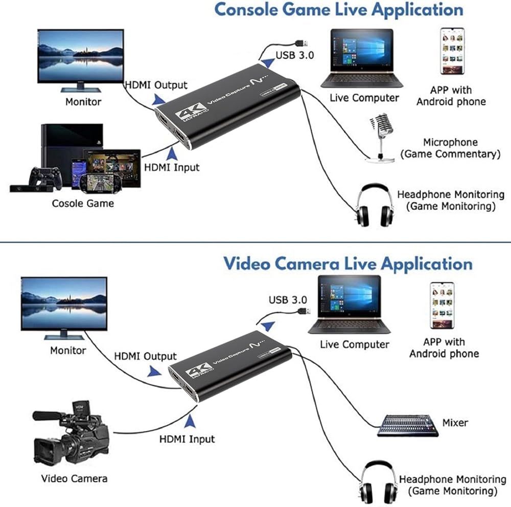 Capture and Stream Video Recorder Grabber, HDMI to USB 3.0 4K Video Capturer 1080P 60HZ for Game Recording, Live Streaming Broadcasting