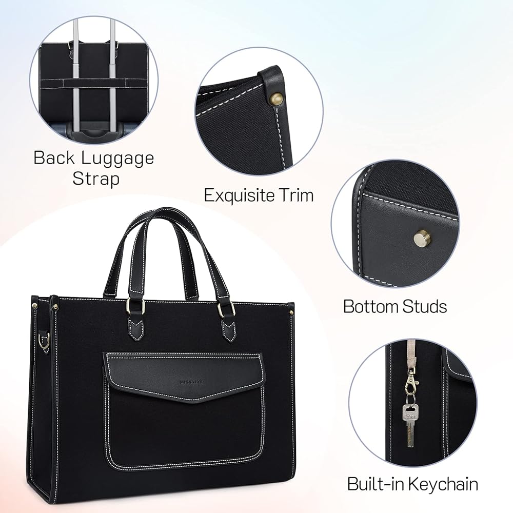 Multiple Carrying Options- Made with double handles, it also comes with an adjustable shoulder strap that can be removed. Able to carry it as a handbag or crossbody bag. The back trolley sleeve can be attached to rolling luggage for a business trip.