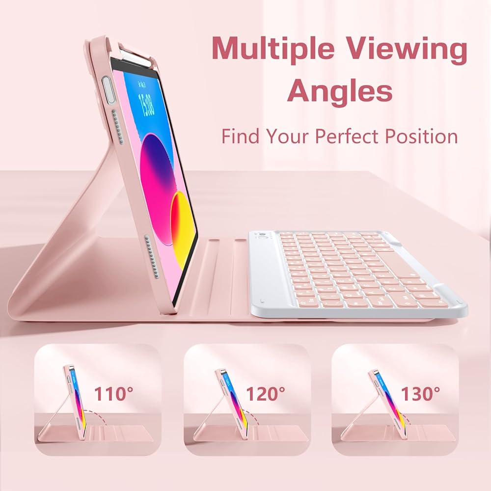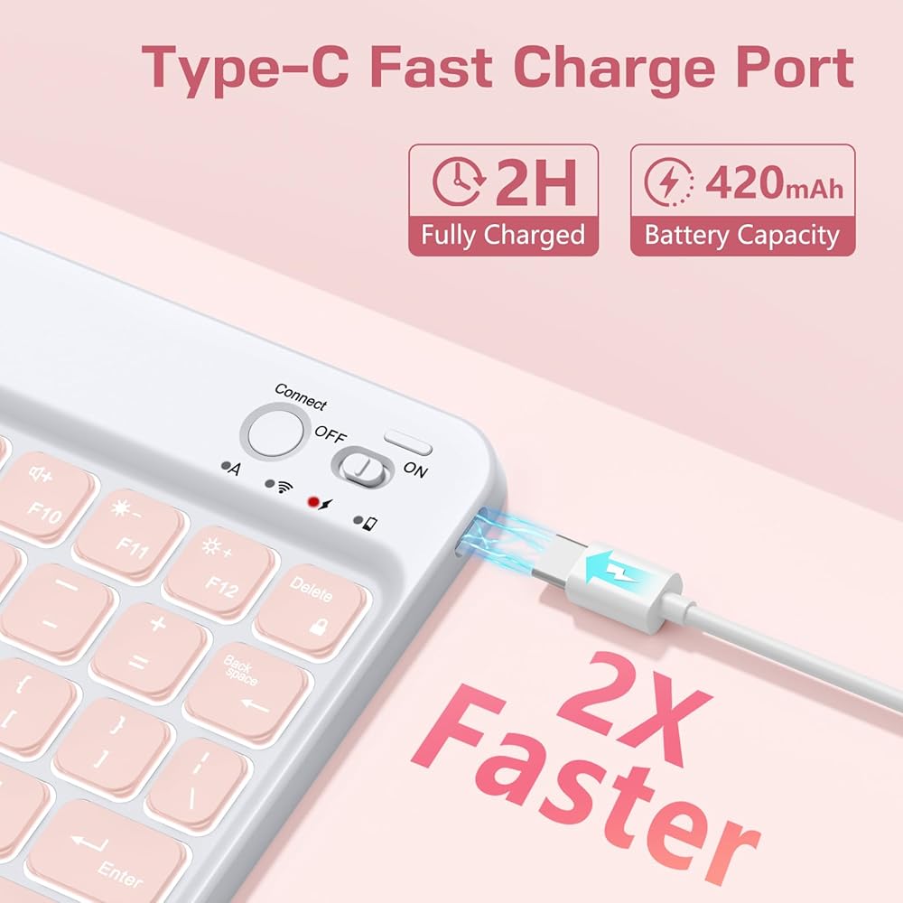【Long Battery Life & Fast Charge】 The iPad 11th/10th generation keyboard features 420mAh high-capacity battery with auto energy-saving mode that activates after 10 minutes of inactivity, ensuring extended usage. Equipped with a Type-C fast charging port, it fully charges in just 2 hours, so you never need to replace the battery.