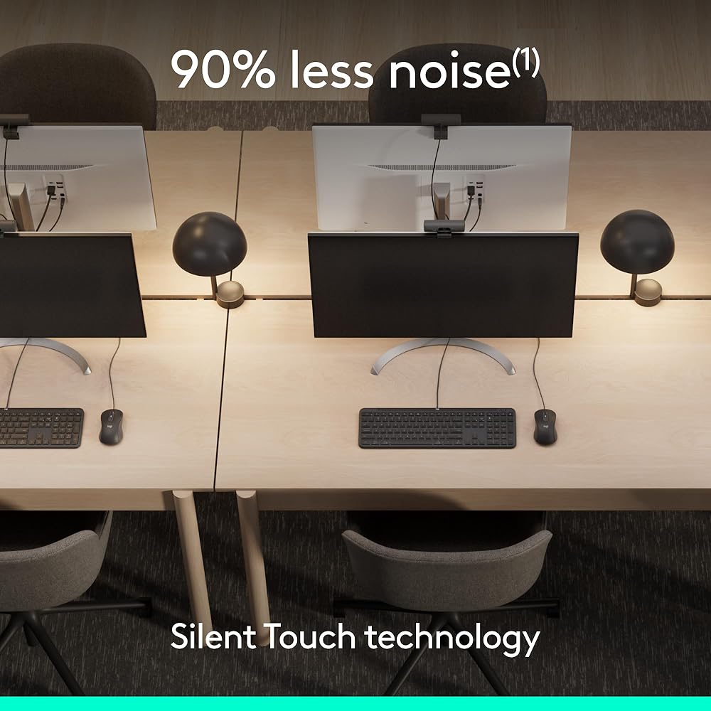 Quiet clicks: Silent Touch technology reduces 90% of clicking noise(1), promoting focus in open workspaces