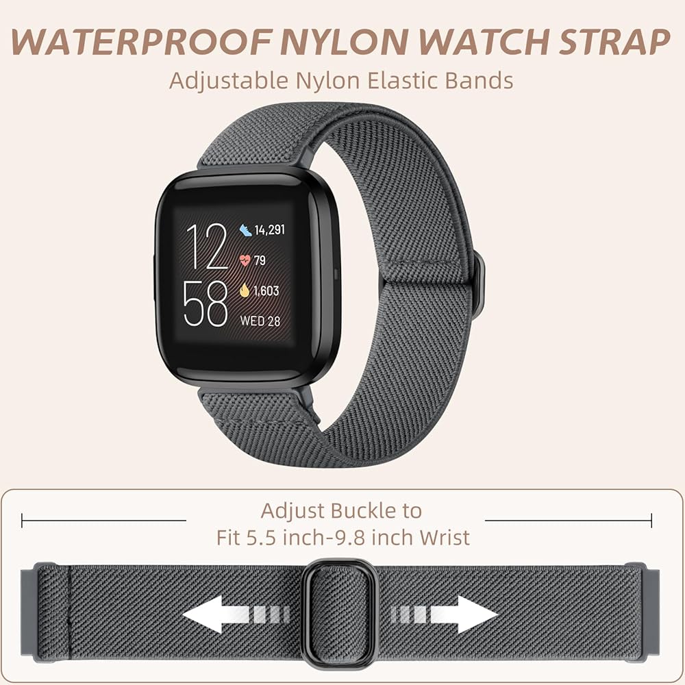 Compatible Models: Our stretchy nylon bands are compatible with Fitbit Versa 2/Versa/Versa Lite/Versa SE for women men, these nylon elastic bands ensure seamless compatibility with your smartwatch. No need to worry about installation issues – it fits effortlessly and securely, providing a hassle-free replacement experience. NOTE: Just stretchy bands included, no watch included.