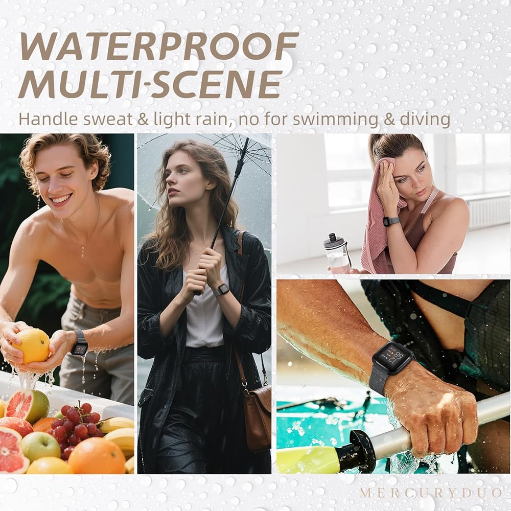 Water Resistant: Our waterproof elastic bands compatible with Versa 2 bands for woman feature advanced waterproof coating technology, effectively preventing the penetration of water, sweat, light rain, or splashes. Even if exposed to certain spills, such as coffee, you can simply rinse it with water within one minute to clean the bands. You don't have to worry about moisture affecting the bands, making them suitable for various sports and leisure occasions.
