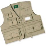 - Lightweight Khaki Cotton/Polyester BlendLoads of Storage PouchesShearling Fly PatchHook and Loop-Flapped PouchesZippered Compartments