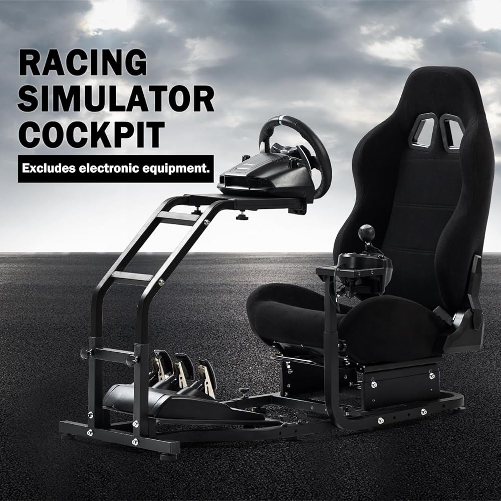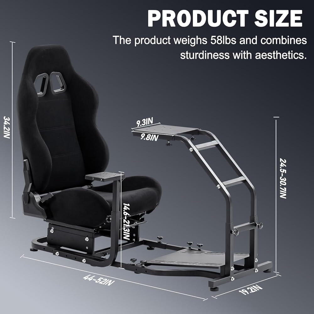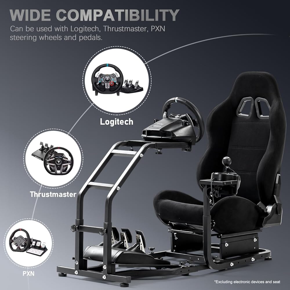 Marada Adjustable Racing Simulator Cockpit with Comfort Racing Seat Fit for Logitech G25 G27 G29 G920 G923, for Thrustmaster T80 T300RS TX F458 T500RS, Race Driving Sim Stand No Steering Wheel/Pedal