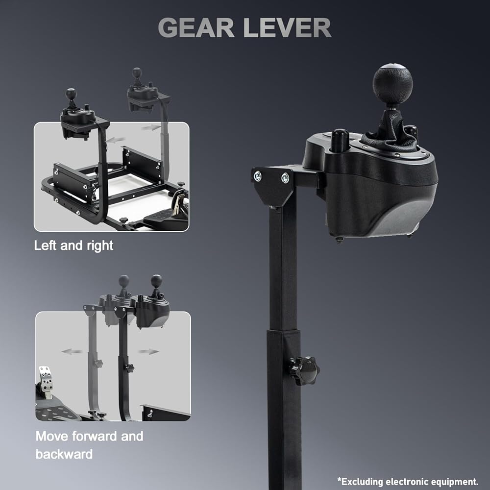 【More Convenient】Driving sim bracket frame parallel design, legs without obstruction, easy to quickly move up and down, shift lever can be interchanged left and right