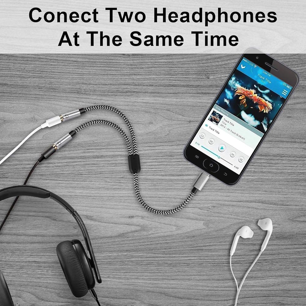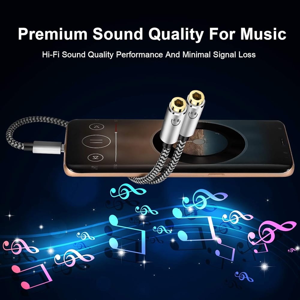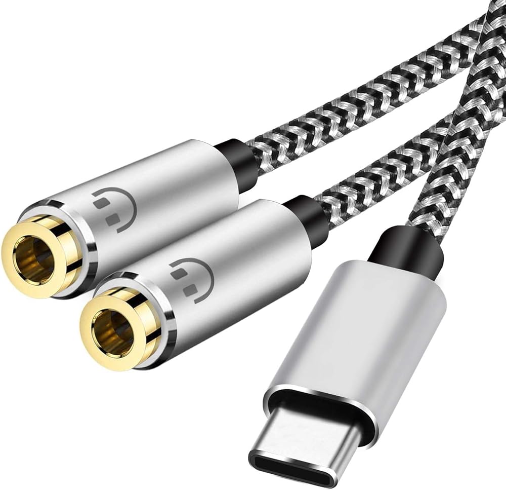USB C Audio Sharing Splitter: This usb c headphone splitter will convert the signal from ONE USB Type C port into TWO 3.5mm female Aux port . You don't need to share 1 earbud with your mates when watching movies or music . This usb c headphone jack splitter allows you to connect 2 headphone for same audio play