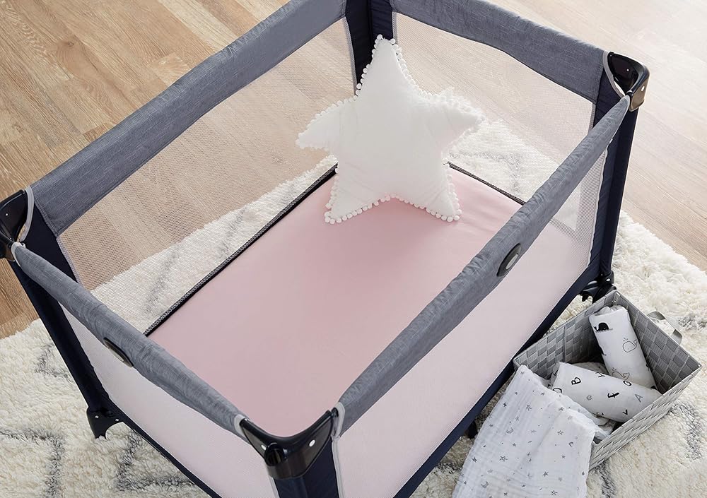 Our 100% Organic Cotton value jersey knit fitted Playard sheet provides comfort for the next generation. Fits standard 27" x 39" playard mattresses; 4" deep pockets with elastic in the corners provide a snug and secure fit for baby's comfort. Machine washable cold with gentle cycle, tumble dry low for best results.