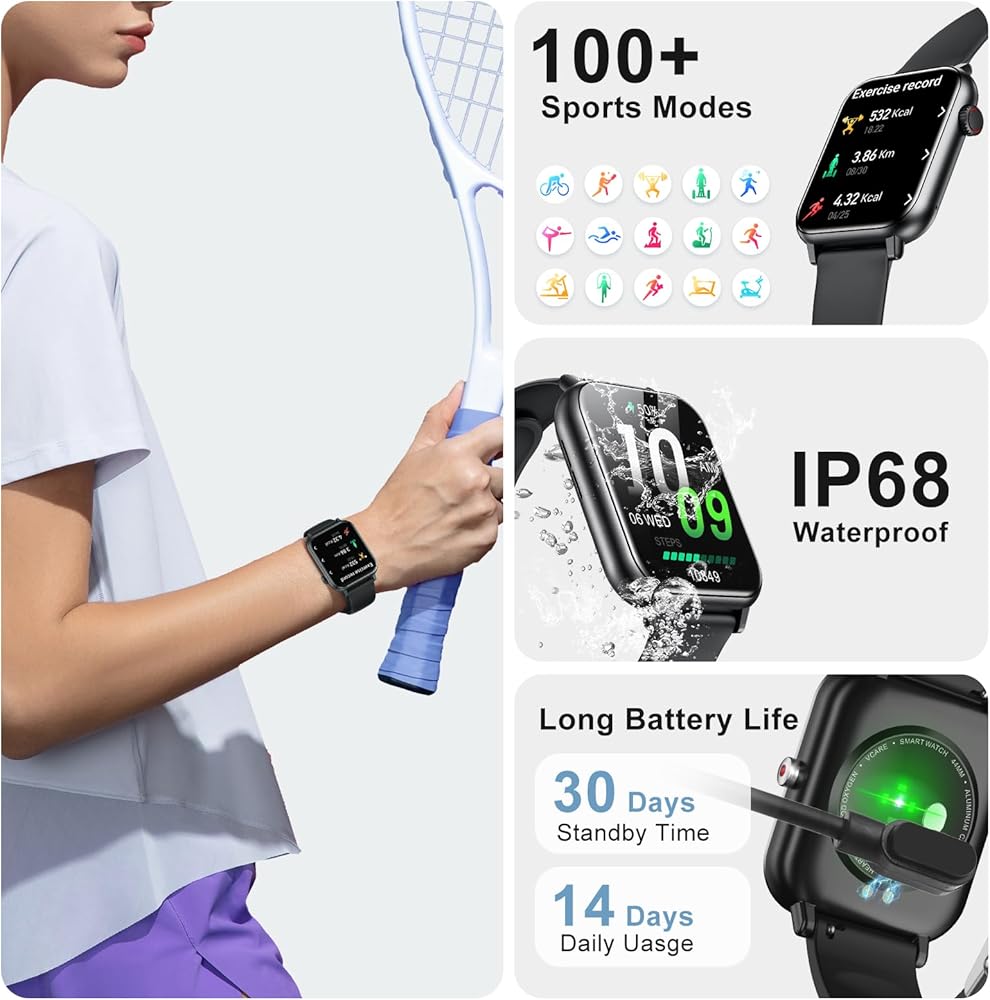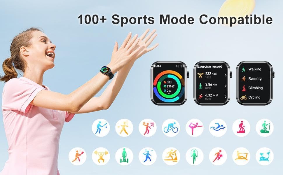 100+ Sports Modes & Waterproof - Track workouts with over 100 modes. IP68 waterproof rating makes it perfect for any activity, indoors or out.