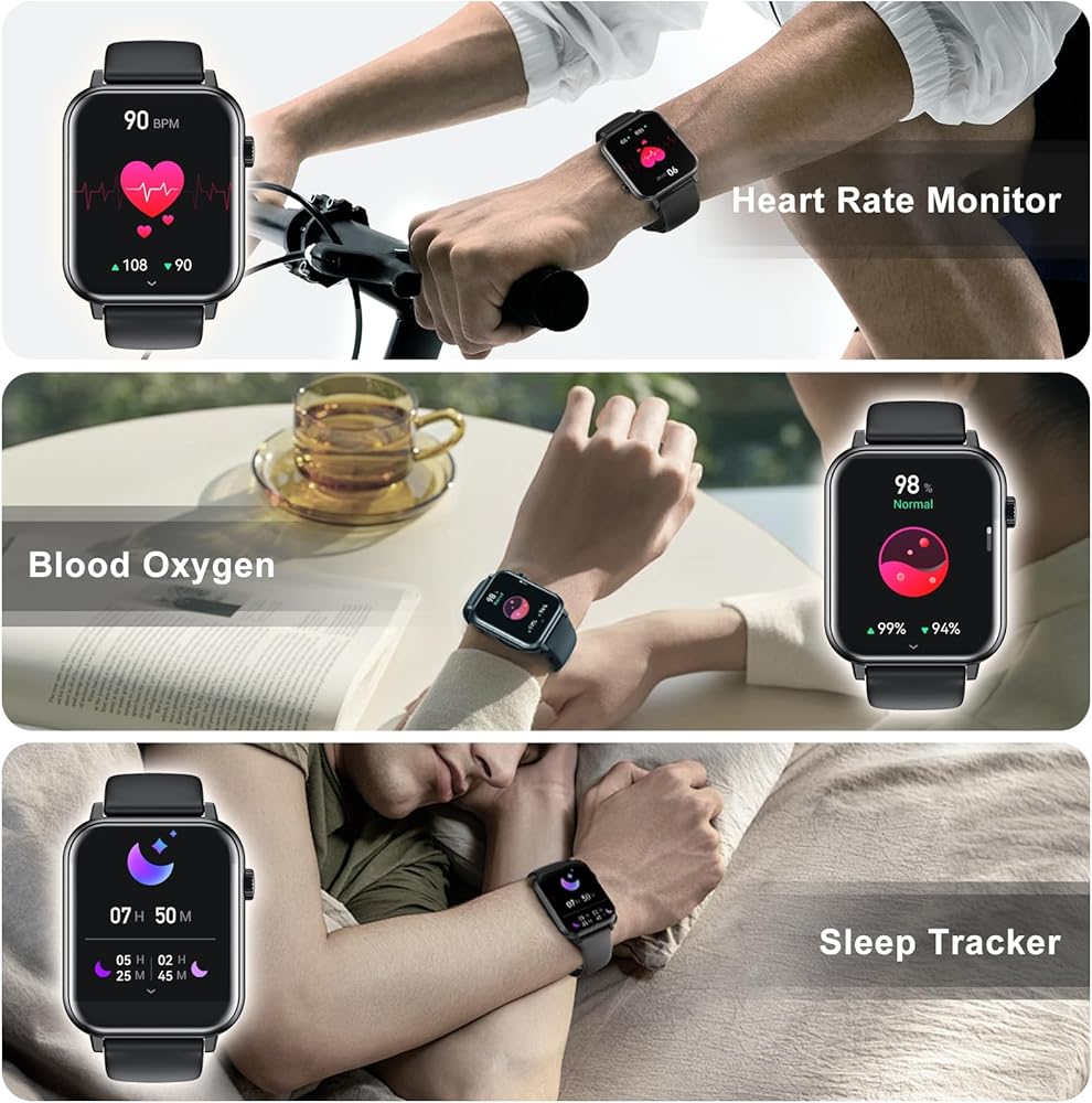 Smart Watch for Men Women 1.96" HD Screen Smartwatch Answer/Make Calls 100+ Sport Modes IP68 Waterproof Fitness Tracker with Step Counter,Sleep & Heart Rate Monitor for Android iOS Phones