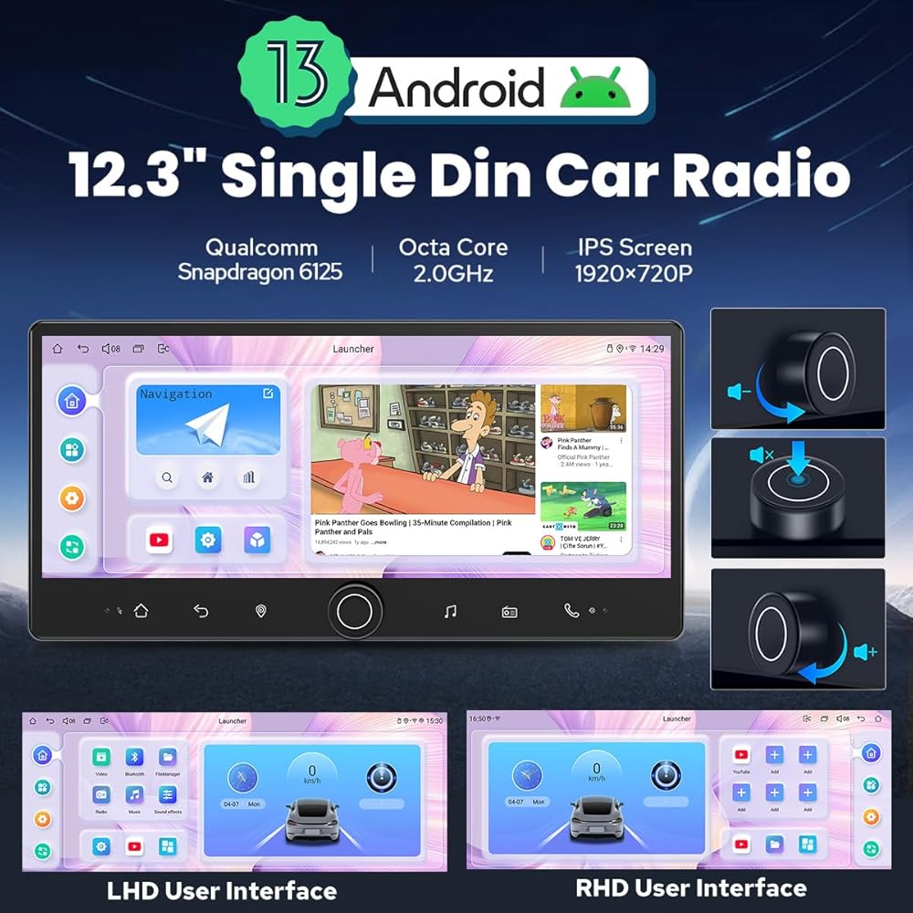 Joying 12.3" Single Din Touchscreen Radio Android 13 Head Unit with Carplay and Android Auto Detachable Car Stereo with Bluetooth, AM/FM, Subwoofer Output, GPS, Video in(JY-HTS03N8)