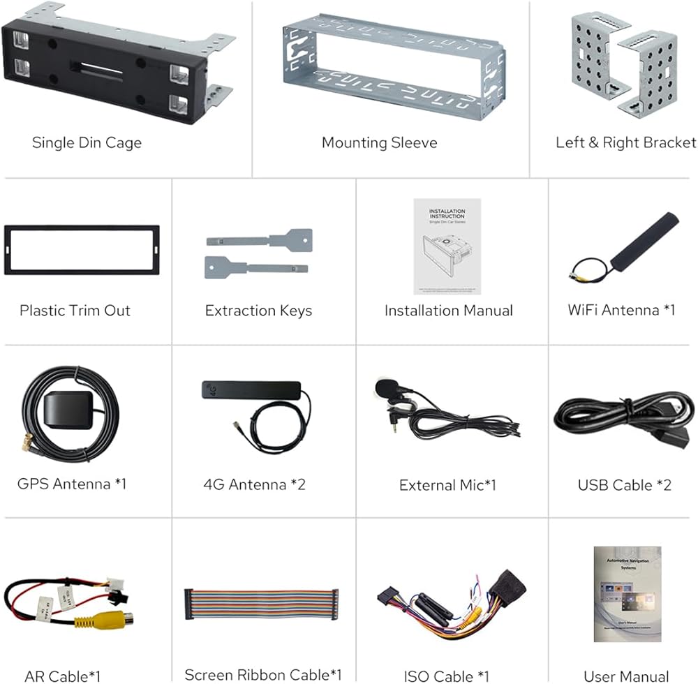 🚗【Notices】1.For installation, you may need installation frame kit, special ISO harness, amplifier adapter or caubus decoder which according to your car's situation. 2. Doesn't support factory car GPS antenna, back up rear camera, Bluetooth, USB and microphone ect. 3. Please note that it only supports JOYING accessories; DAB+ digital radio adapter, DVR , OBDII scanner, reverse camera, TPMS and steering wheel controller are not included in the delivery contents, but can be ordered additionally.