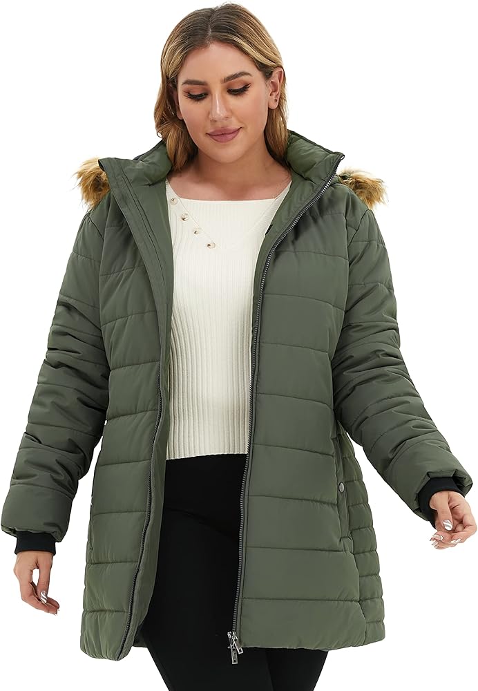 FLATTERING SILHOUETTE FOR PLUS -- Tailored to plus women shapely figure, this ladies plus size winter coat are also excellent in both fit and comfort, no bulky and shapeless.