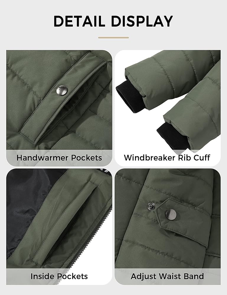 SUPERIOR WARMTH & NO HEAVY -- Quilted with high compressible and washable synthetic fiber, this hooded plus-size winter coat locks the heat efficiently without the extra heavyweight. It keeps you warm and moves easily in winter . Furthermore, the quilted hood, stand collar, and ribbed sleeve cuff help against chilly air outdoor.