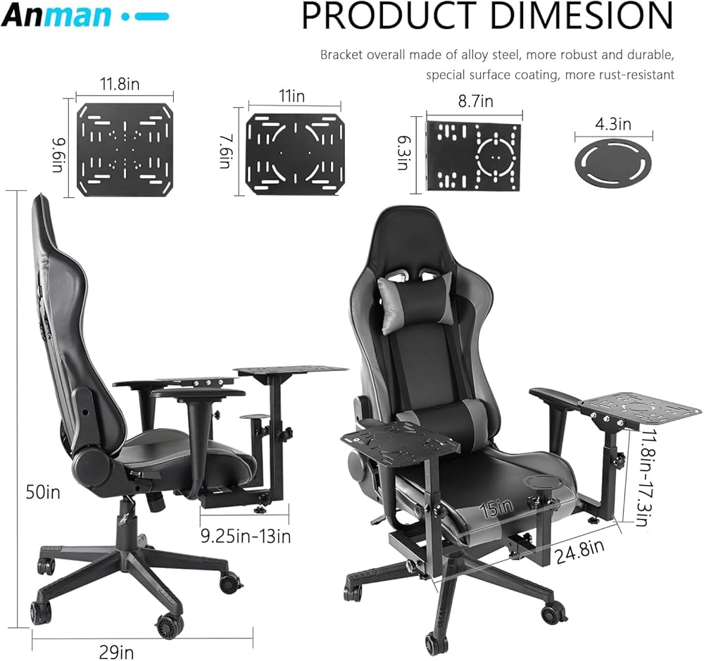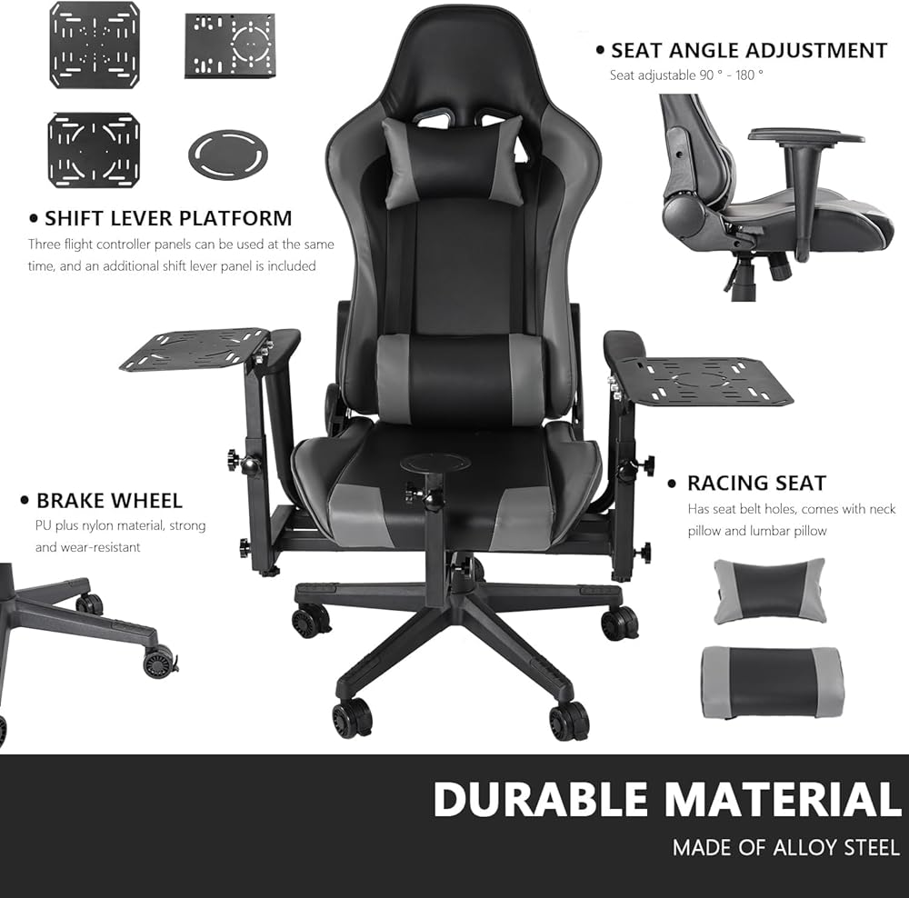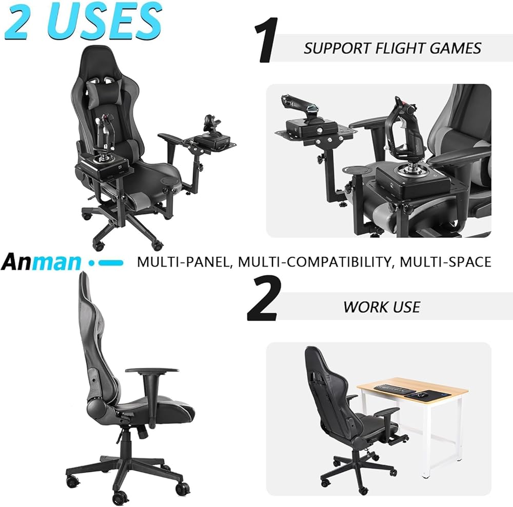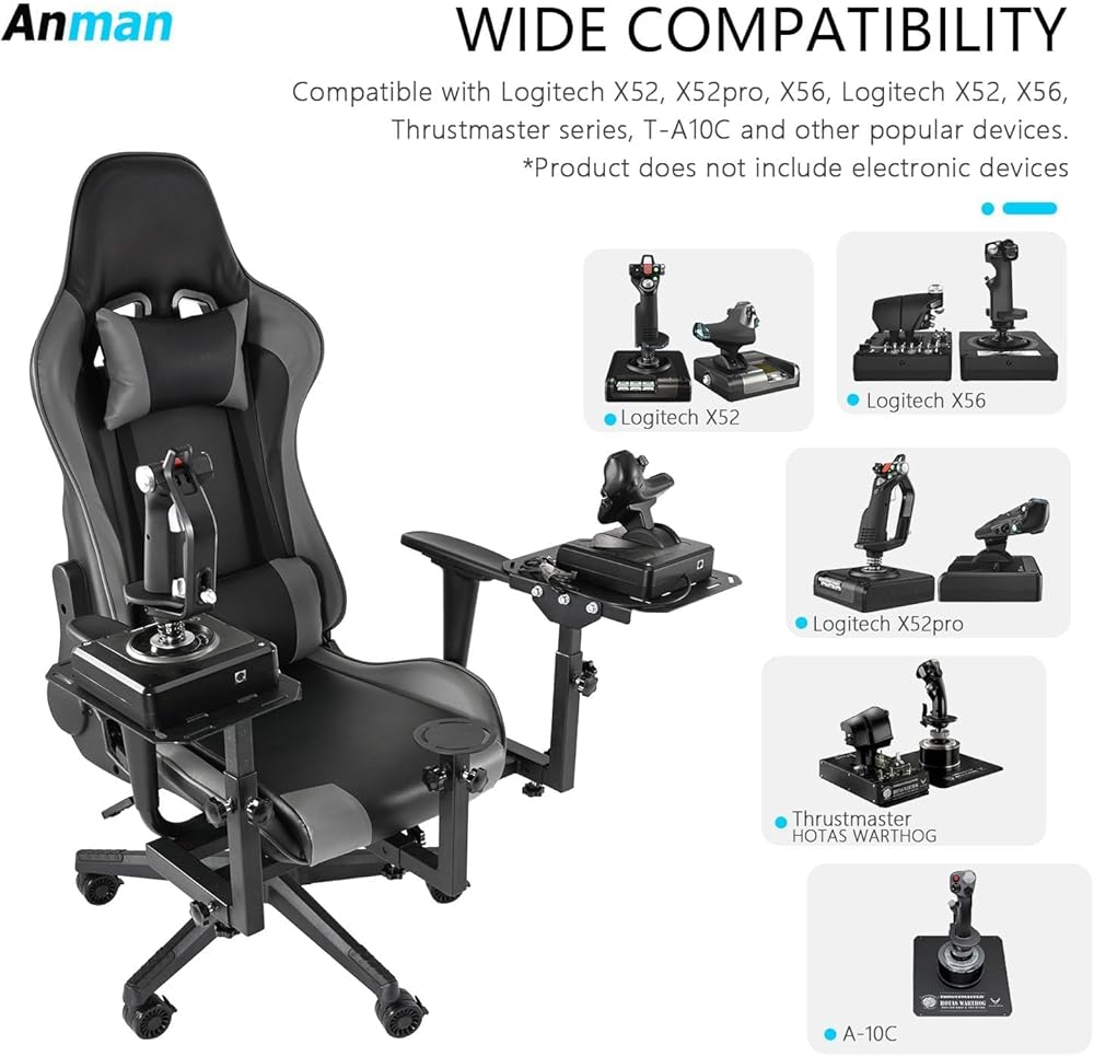 Anman Multifunctional Flight Racing Simulator Cockpit Joystick/Hotas Mount with Chair Fit for Thrustmaster A10C Hotas Warthog Logitech X56 X52 Race car seat Adjustable Racing Steering Wheel Mount