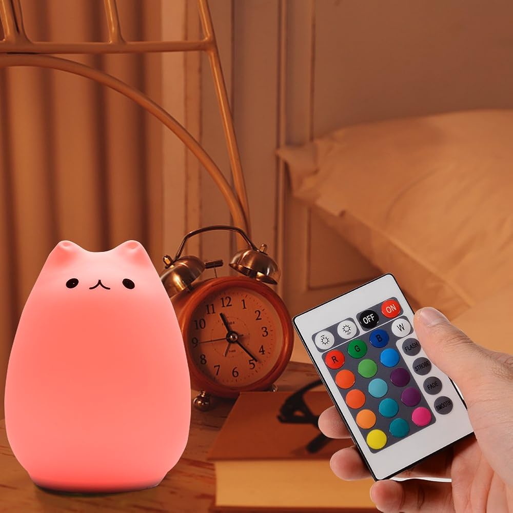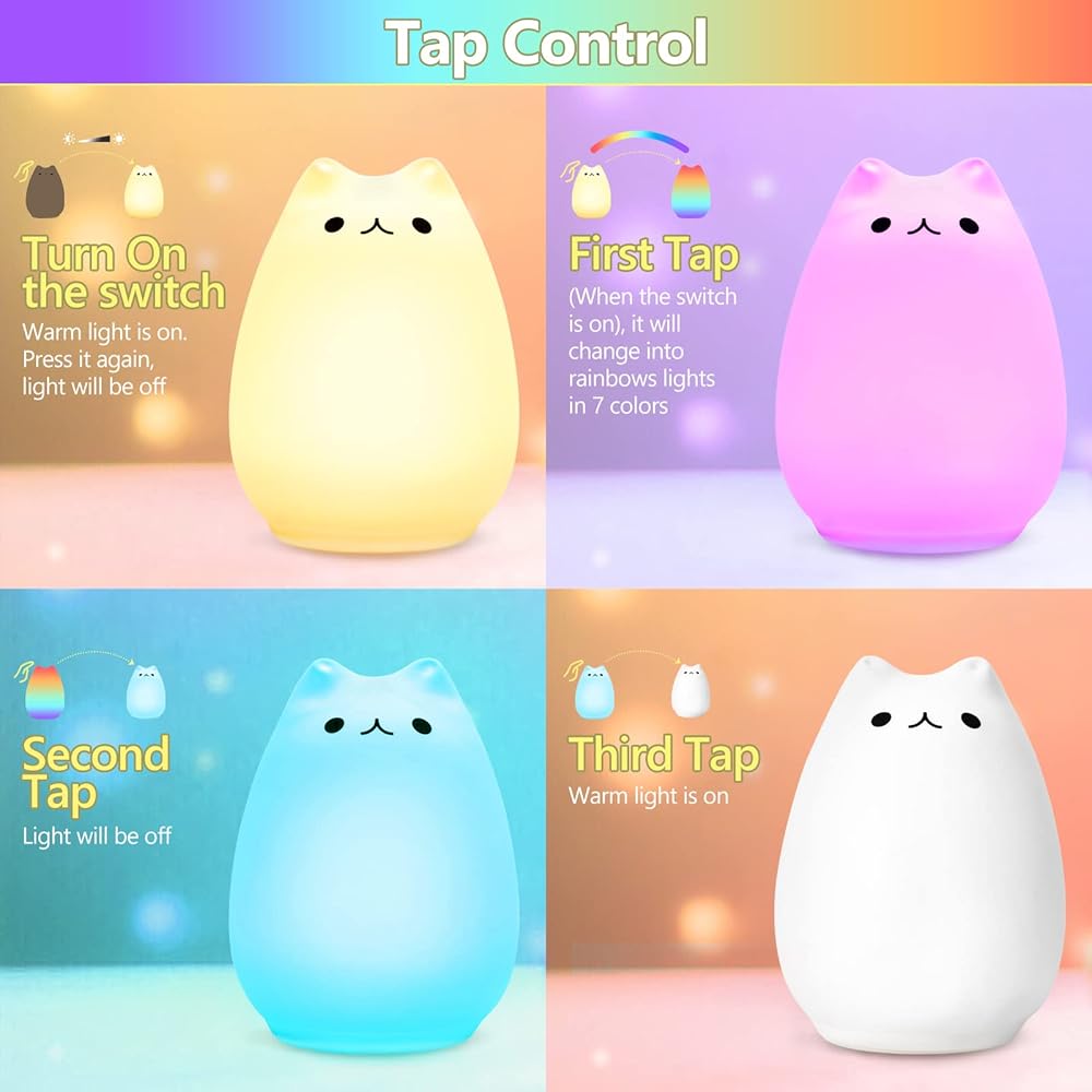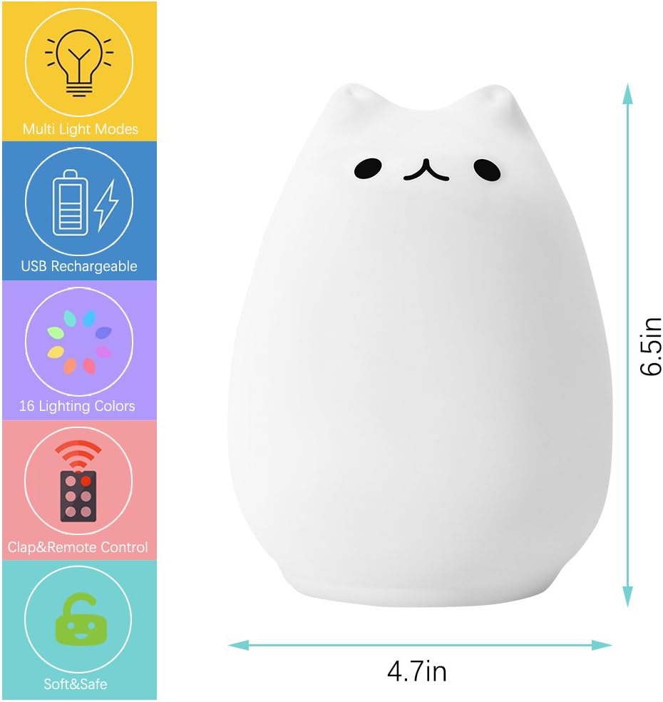【Safe to Use】 - The cover is made by BPA-free washable and soft silicone, no sharp edges which is safe for everyone including babies. This cat lamp glows off soft lighting, will not flicker or hurt kids eyes. It can be worked as a baby guardian all night, helps you with diaper changing and breastfeeding. If you are a fresh mommy looking for a silicone night light, this cat light will be your perfect choice!