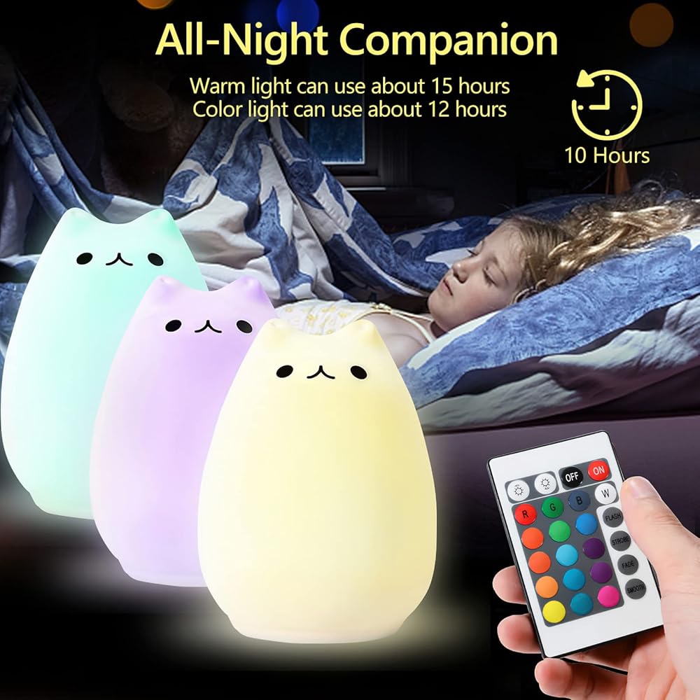 【Adorable Smiling Face】 - The portable night light with Lovely kitty cat smiling face will become your child's "best friend", if your child goes to the toilet with the cat lamp at night, it will help your child overcome the darkness.