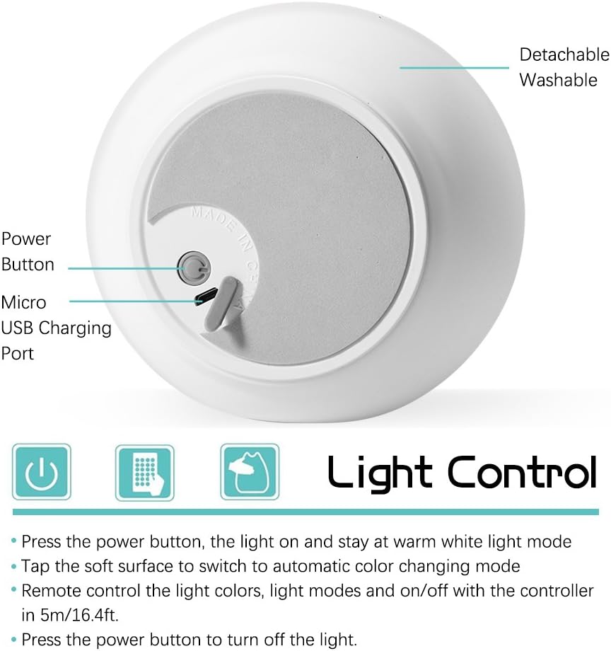 【Using the remote control will have more functions!】 - Support Tap/remote control. With remote, There has 16 static colors + Adjustable brightness + 4 lighting modes(breathing/fade/flash/strobe). More importantly, in the cold winter, you can turn off the cat light without getting out of bed, just need the remote control to turn off/on easily!