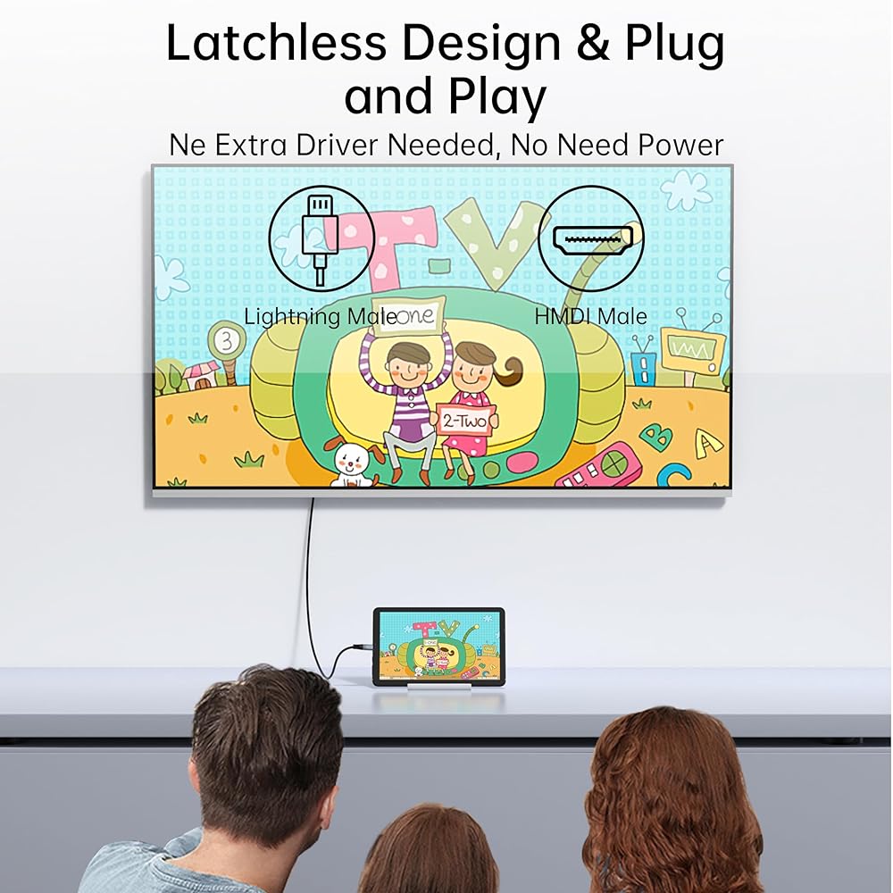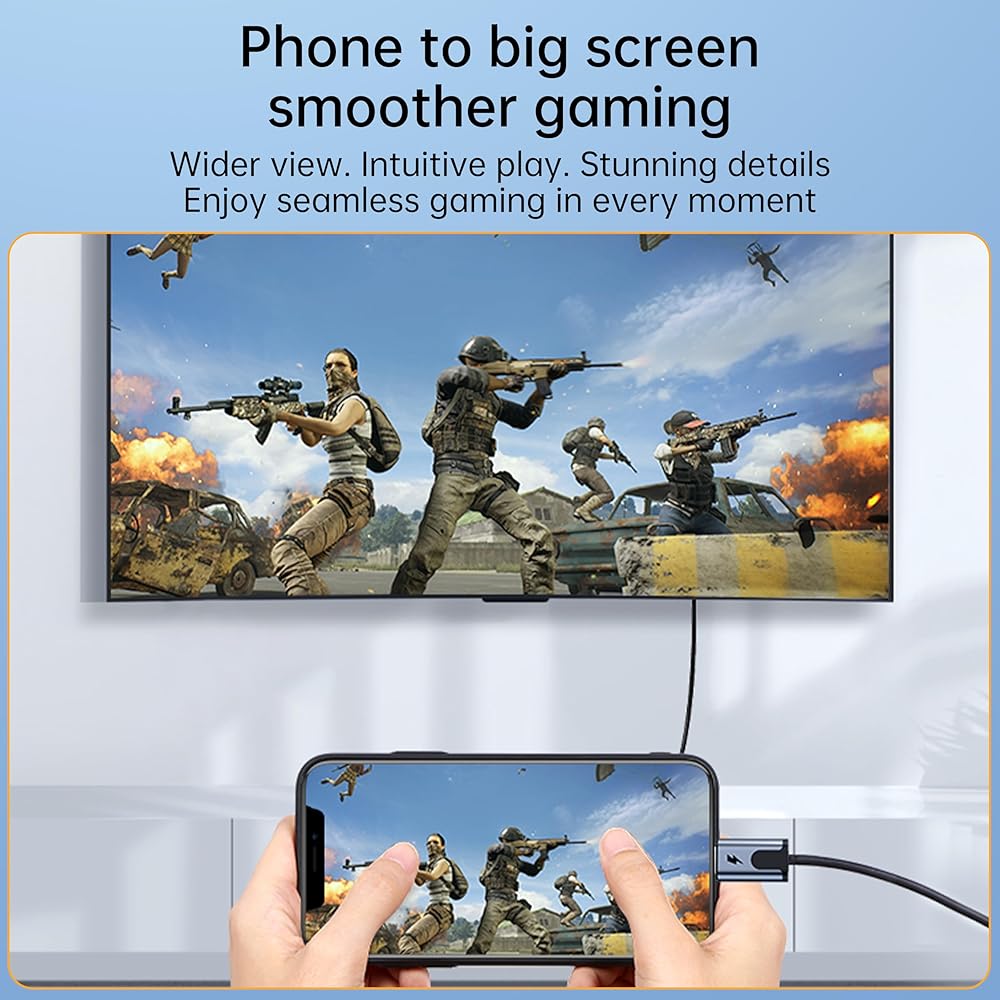 【Lightning to HDMI Cable】with Instant 1080P Mirroring Seamlessly project your iPhone 14/13/12 or iPad to any HDMI TV/monitor in crisp 1920x1080 HD. Experience zero-lag gaming, smooth 60Hz live streaming, and cinema-quality movie nights - no apps required!