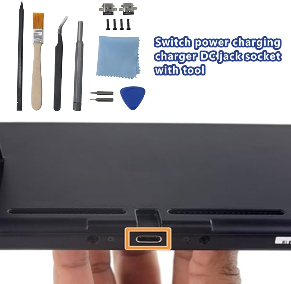 2x PRECTION TYPE CORT FOR NINTENDO SWITCH USB C شحن منفذ الشاحن موصل موصل الإصلاح البديل للموصل البديل لـ NS Switch Charging Charger DC ACTOCK مع أدوات بواسطة YTXXDEUS