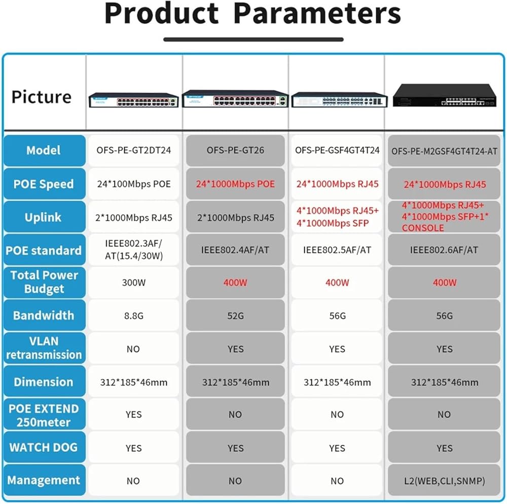 24-port 1000mbps POE switch, 400W 48V Gigabit Fiber Smart Poe SFP Rj45 Network