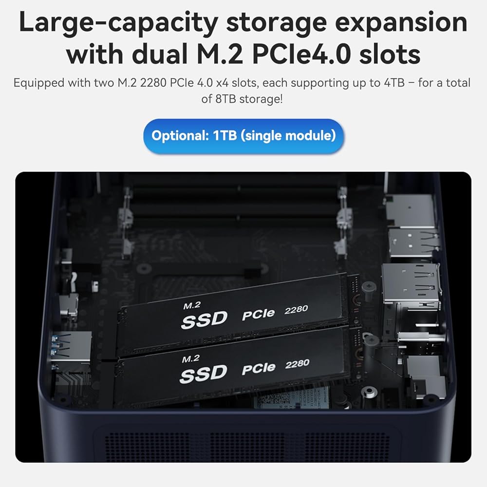 【32GB DDR5 & 500GB NVME PCIE4.0 SSD】The TRIGKEY Ryzen 7 S7 Mini PC comes with 2 accessible memory slots that can be upgraded up to 64 GB (2 x 32 GB) of dual-channel DDR5 5600MHz RAM. The Mini Computer also has a 500GB M.2 PCIe 4.0 NVME SSD(up to Dual Channel 4TB), with the option to expand storage via SATA HDD 2.5inch 7mm (not included) as per your needs.