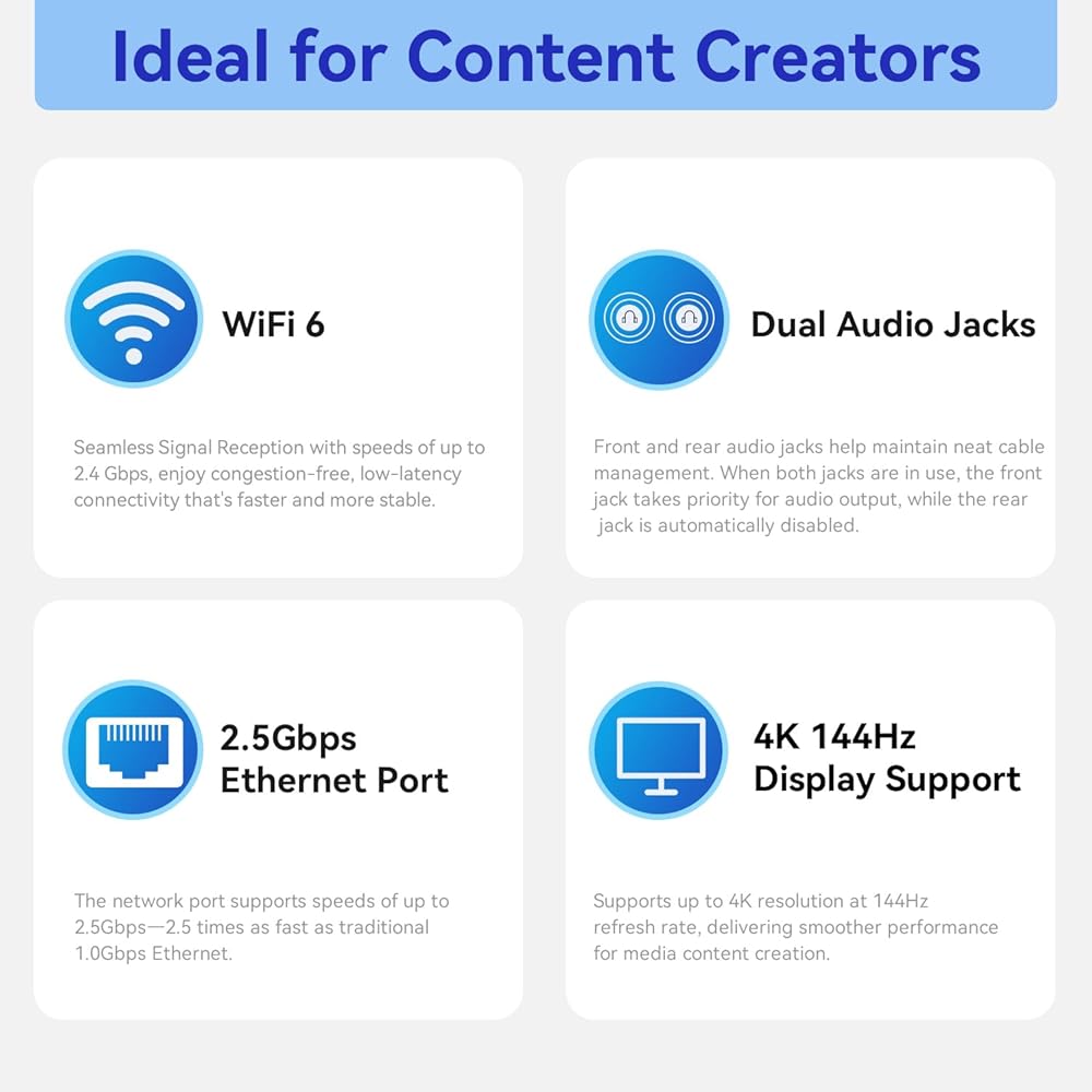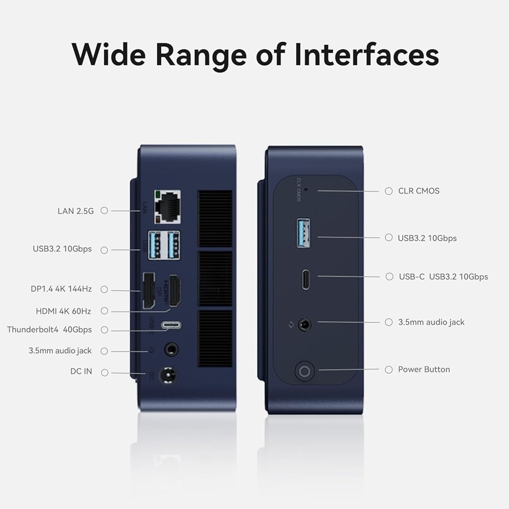 【WiFi 6 and Bluetooth 5.2】The Ryzem 7 Mini PC comes with WiFi 6 and Bluetooth 5.2, it provides faster and more stable wireless connectivity. The Micro PC also features Gigabit Ethernet RJ45 network connectivity. With its rich interface, you get 1x type-C, HDMI, DP, 1x USB 4.0, 2x USB3.2 Gen2 (10Gbps), 2x USB 2.0, 1 x 2.5G Gigabit Ethernet, and a 3.5mm Audio Jack. You can even fix it on the back of your monitor to save desk space.