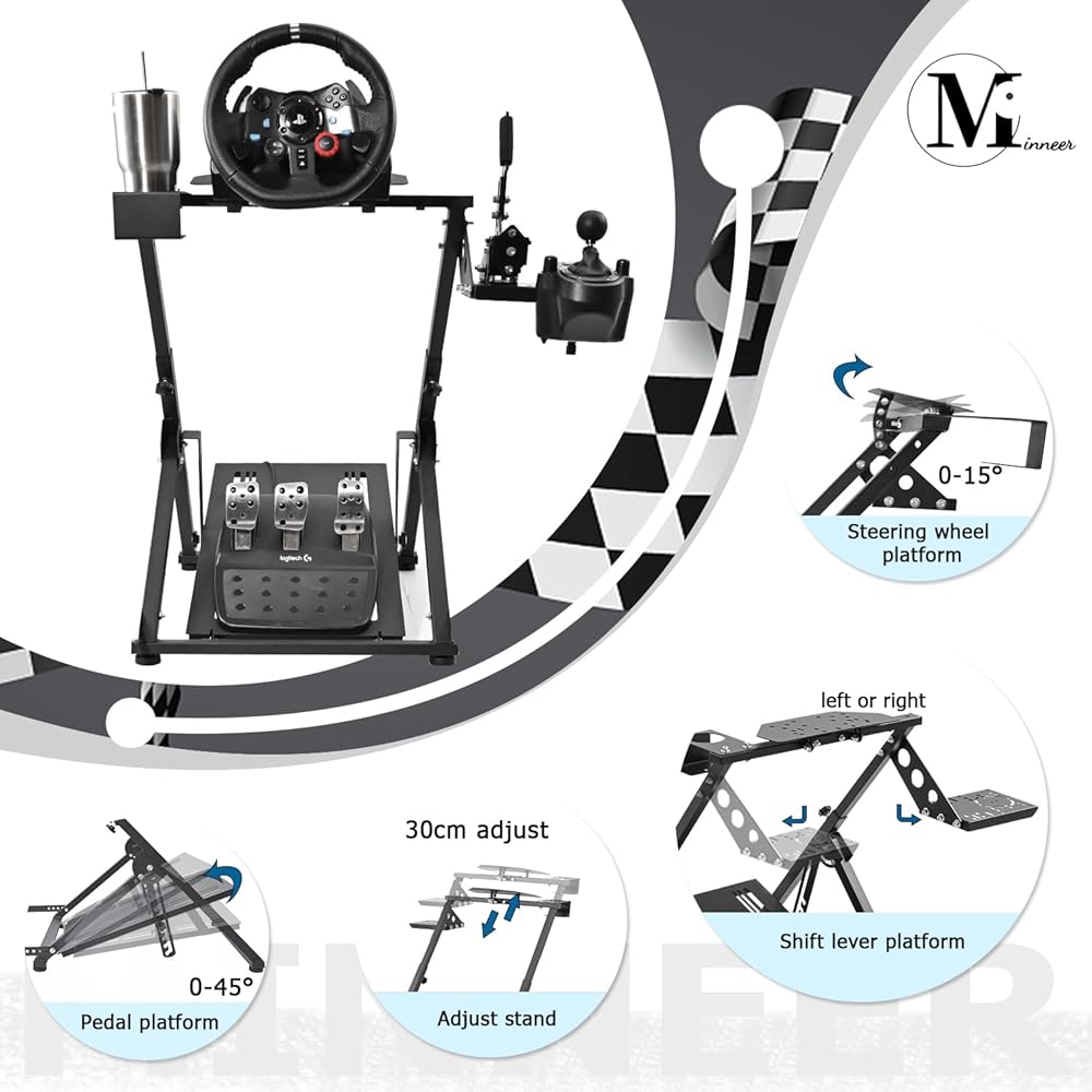 Minneer X-Shape Foldable Racing Steering Wheel Stand Fits for Logitech/Thrustmaster/Fanatec/PXN/Moza G29/G920/G923/T248/T300/TX/V9/R5 Racing Wheel Simulator Cockpit(Wheel,Pedal,Handbrake Not Included)