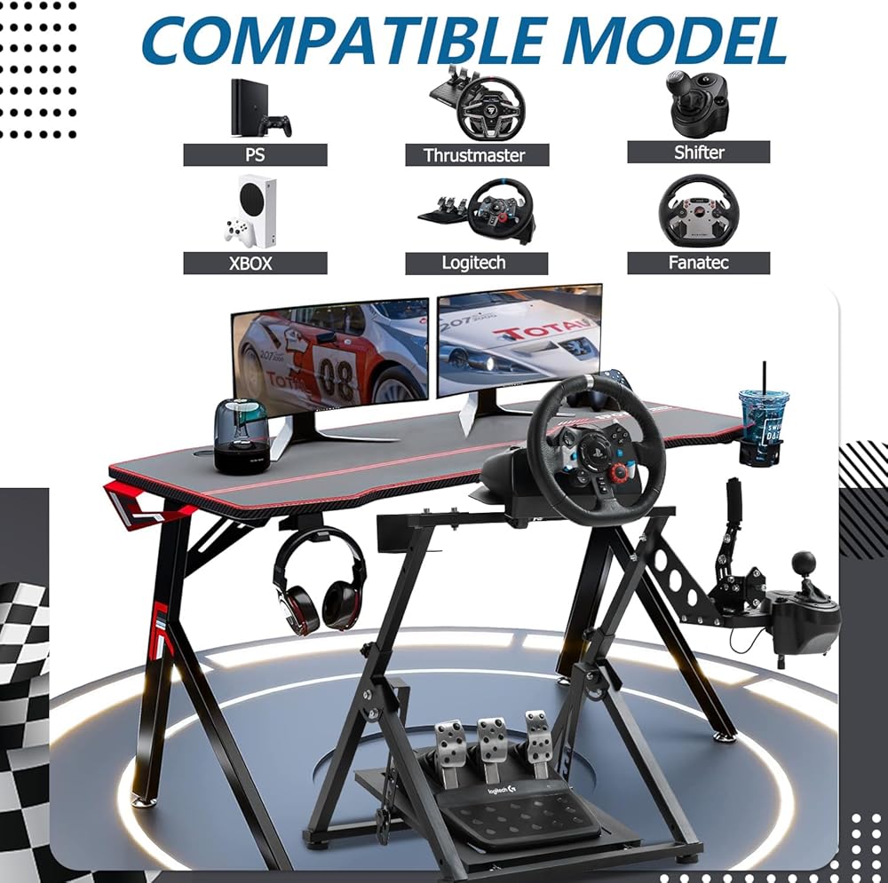 【High Compatibility】The racing simulator cockpit stand is compatible with most steering wheels, pedals and shifters such as G920, G29, G27, G29, T248PS, T300RS GT, V9, R5, etc.