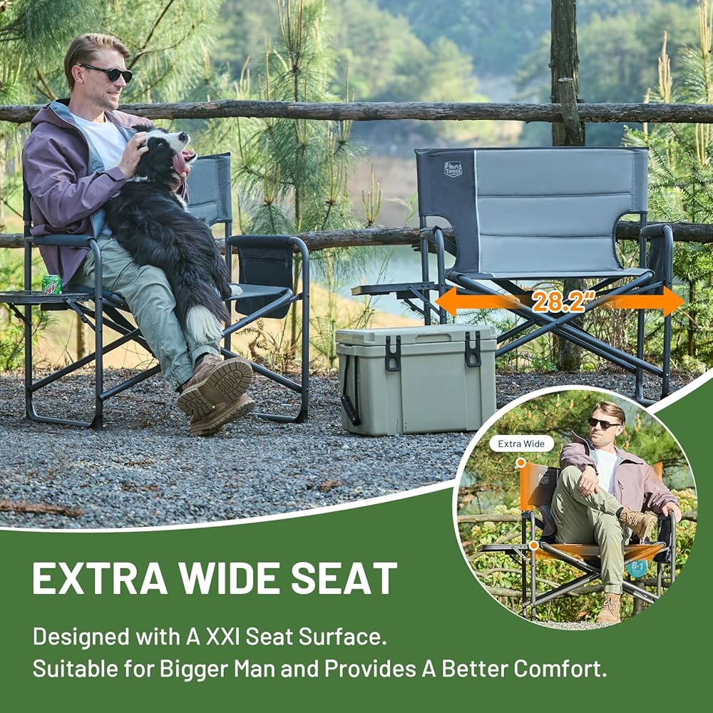 EXTRA LARGE SIZE: With dimensions of 32.7"W x 24"D x 36 3/5 "H, the big camping chair offers a more spacious seating area. It features foam-filled backrest and seat cushions, along with supportive armrests, allowing you to achieve maximum comfort and relaxation even during extended periods of sitting.