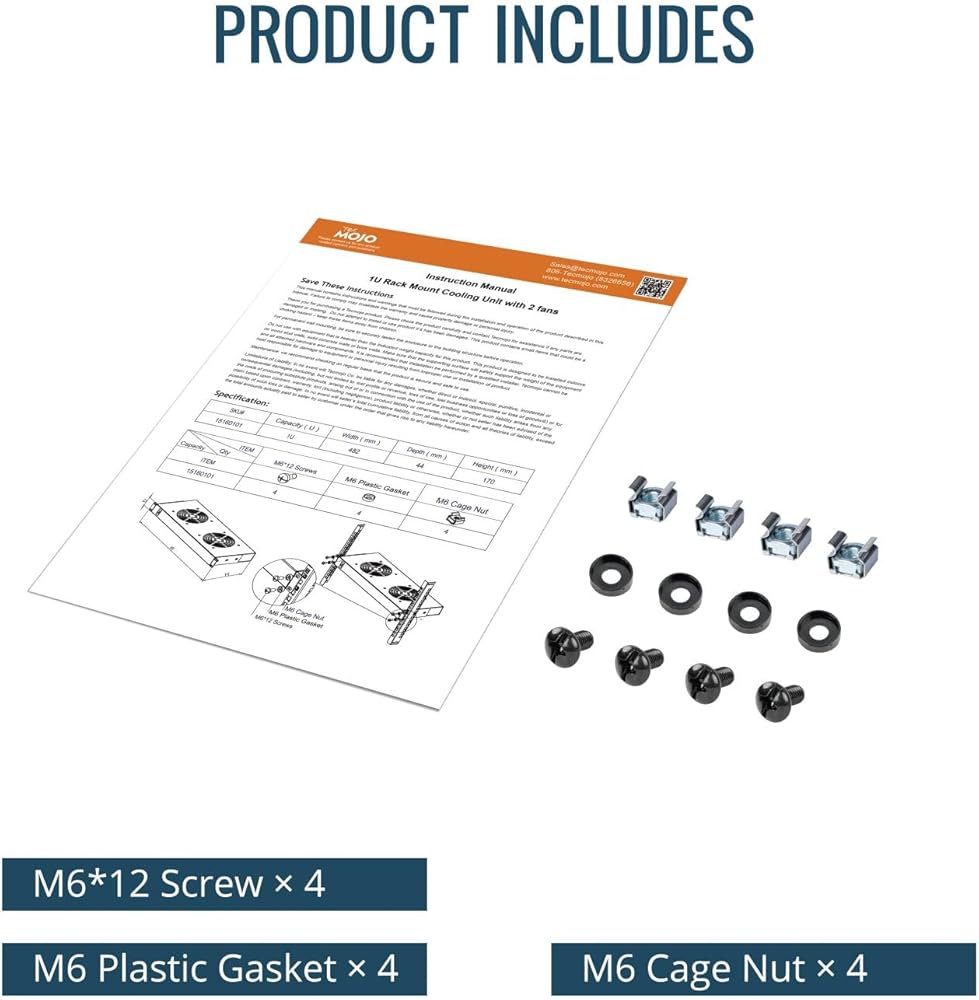 Quality Certification: Rack mount cooling fan is made of high-quality steel; 110 50/60Hz input voltage; 6ft power cord; NEMA 5-15P input plug type; Complete installation accessories are included