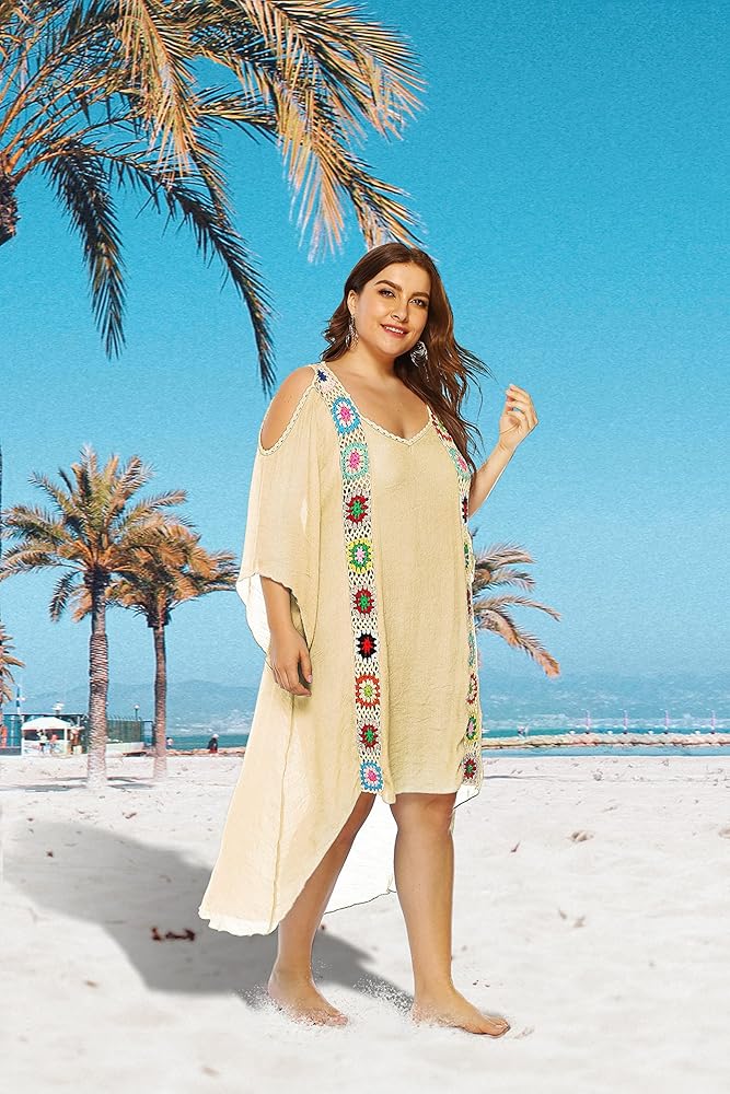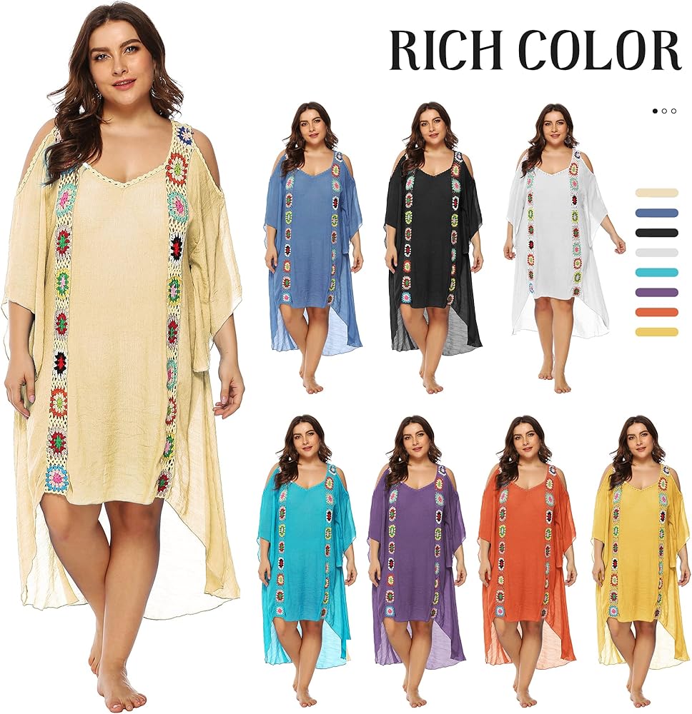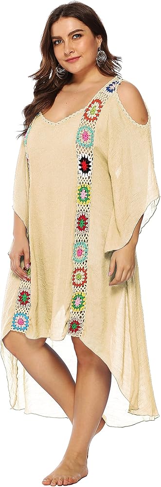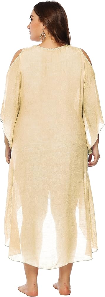 ❀【Stylish Comfortable & Practical Cover Up】:This long swimsuit cover up is loose airy,flowy,sexy,comfortable,breathable,dried quickly.Not only a swim cover ups,also is a beach long beach dress,plus size dresses,boho summer dress,stylish and bright swimsuit cover up,gorgeous coverup,pretty embellished caftan.Oversized style is comfortable to wear,a bit see-through flowy beachwear cover ups makes you more charming